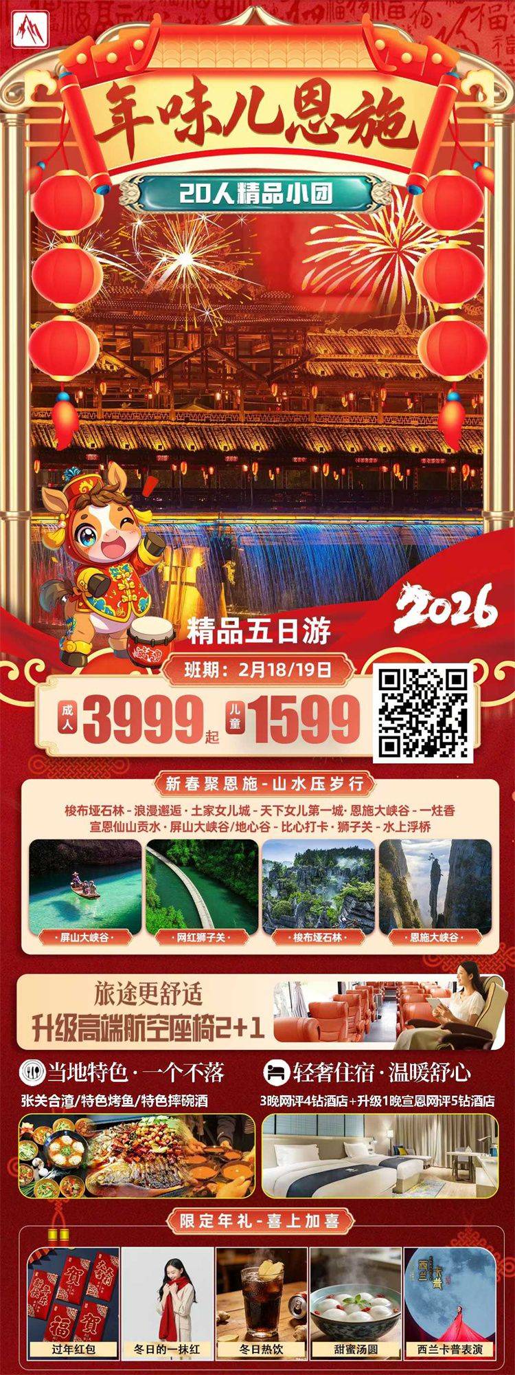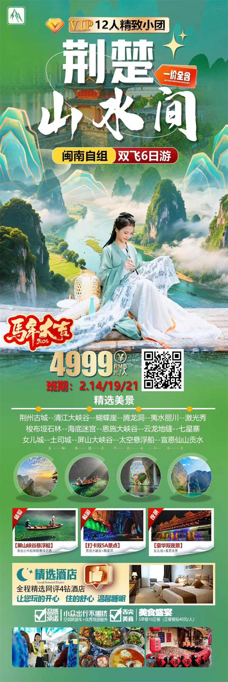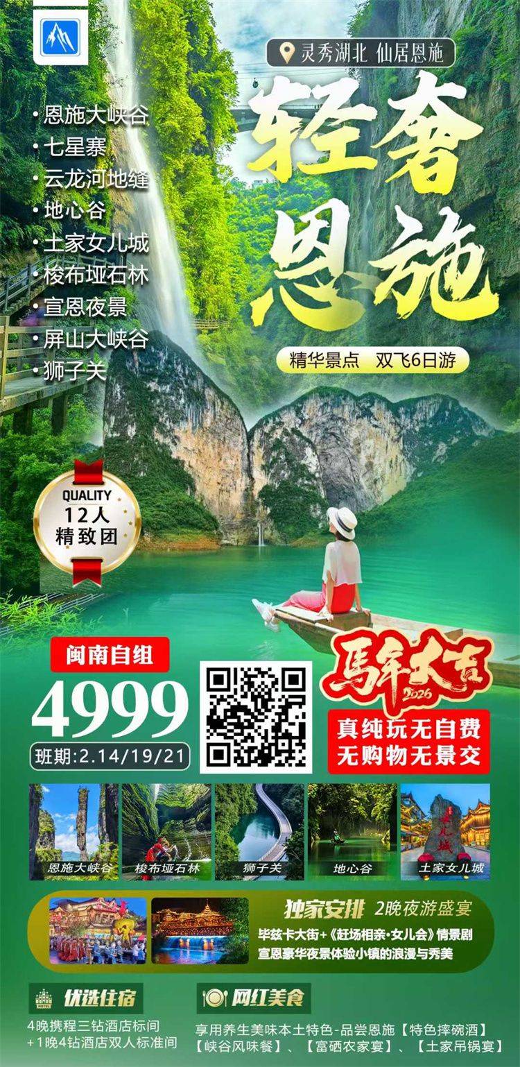 跟团游寒假春节福建出发【湖北恩施全景5-7天】旅游团线路合集
