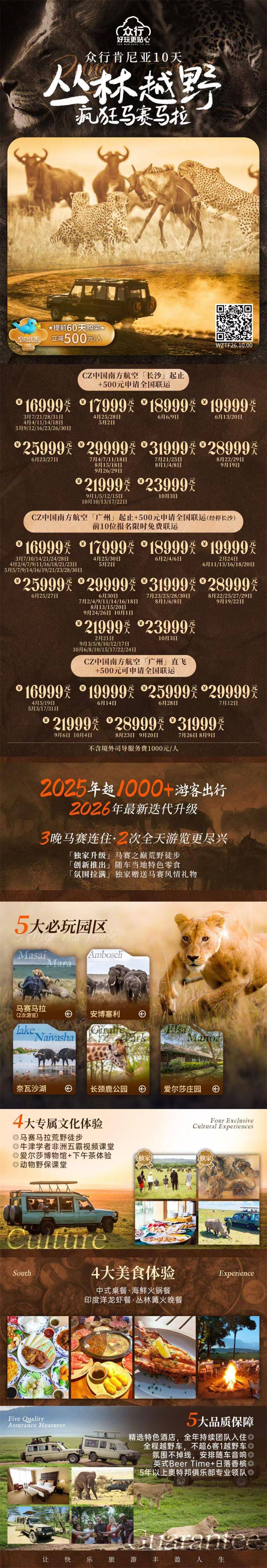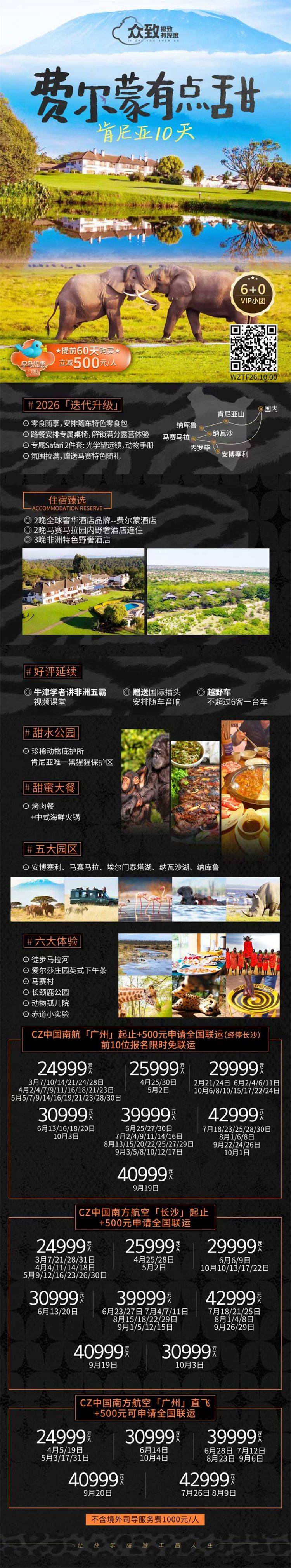 跟团游4-8月广州长沙往返【肯尼亚玩10天】旅游团线路合集