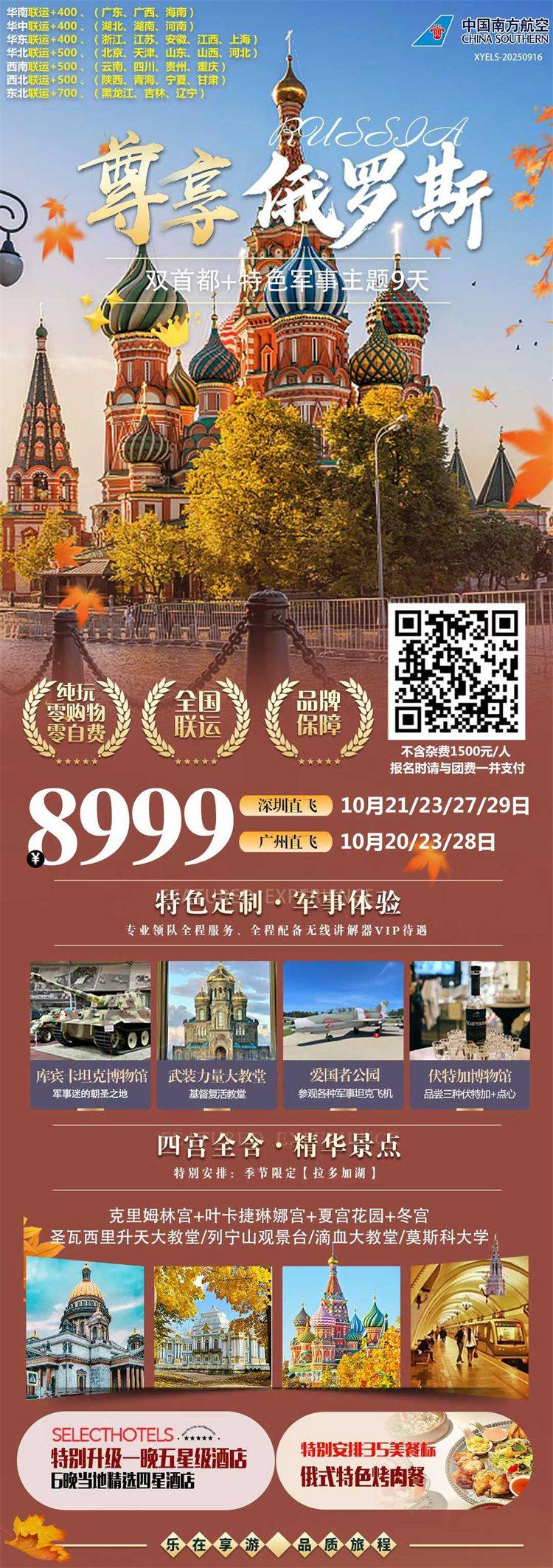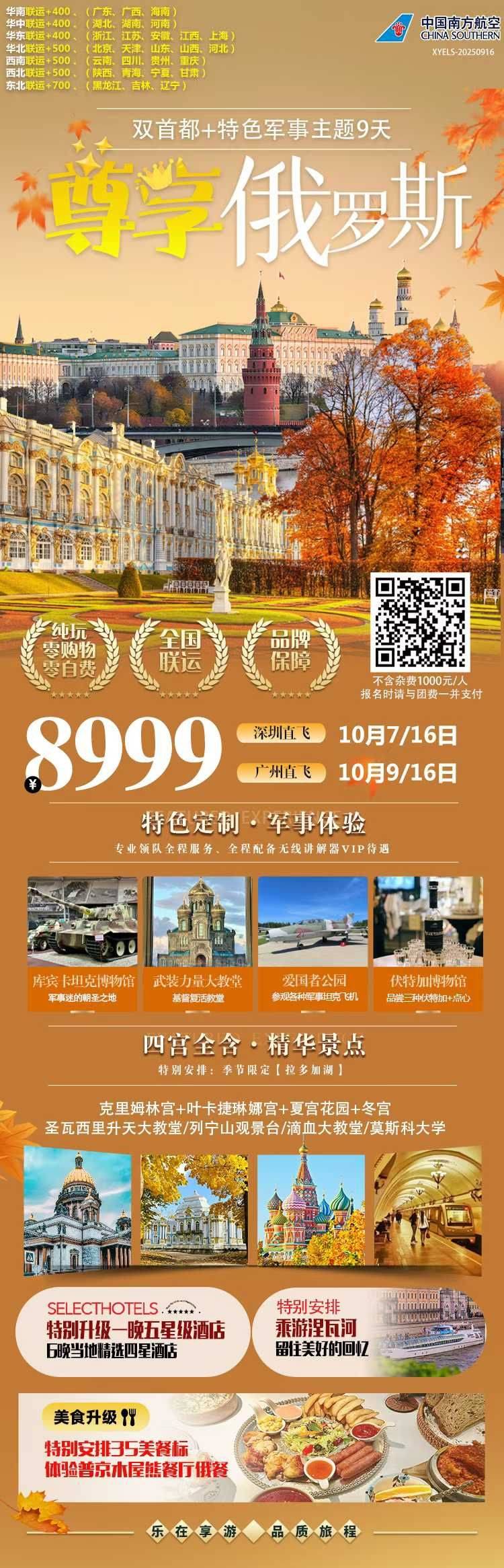跟团游10-12月福建去【俄罗斯双首都8-10天】旅游团线路合集