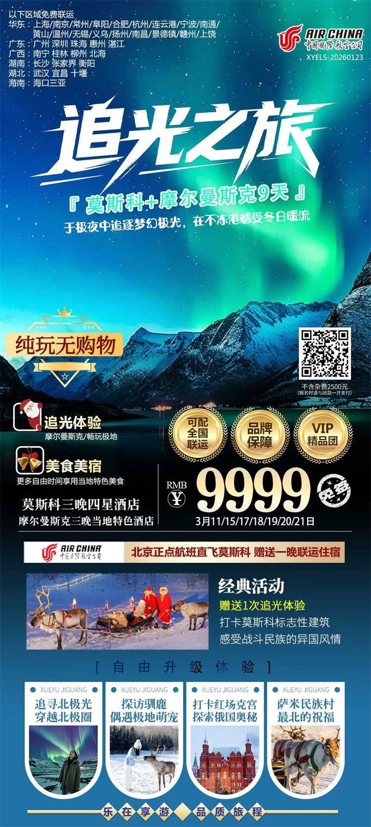 跟团游3月【俄罗斯摩尔曼斯克极光9天】旅游团线路合集