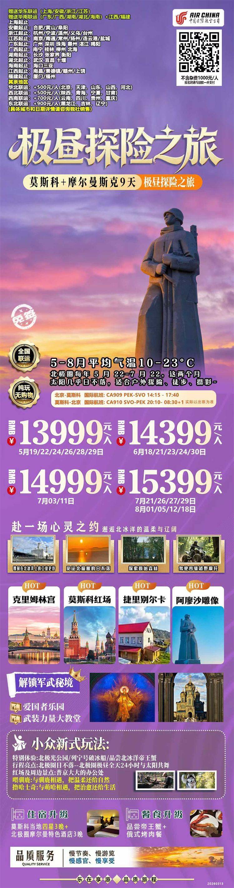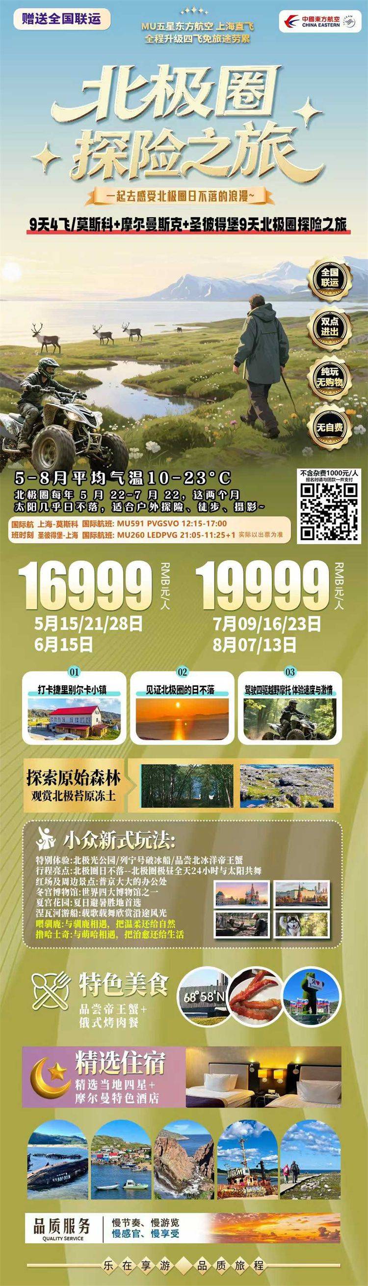 跟团游5-8月【俄罗斯摩尔曼斯克极光9天】旅游团线路合集