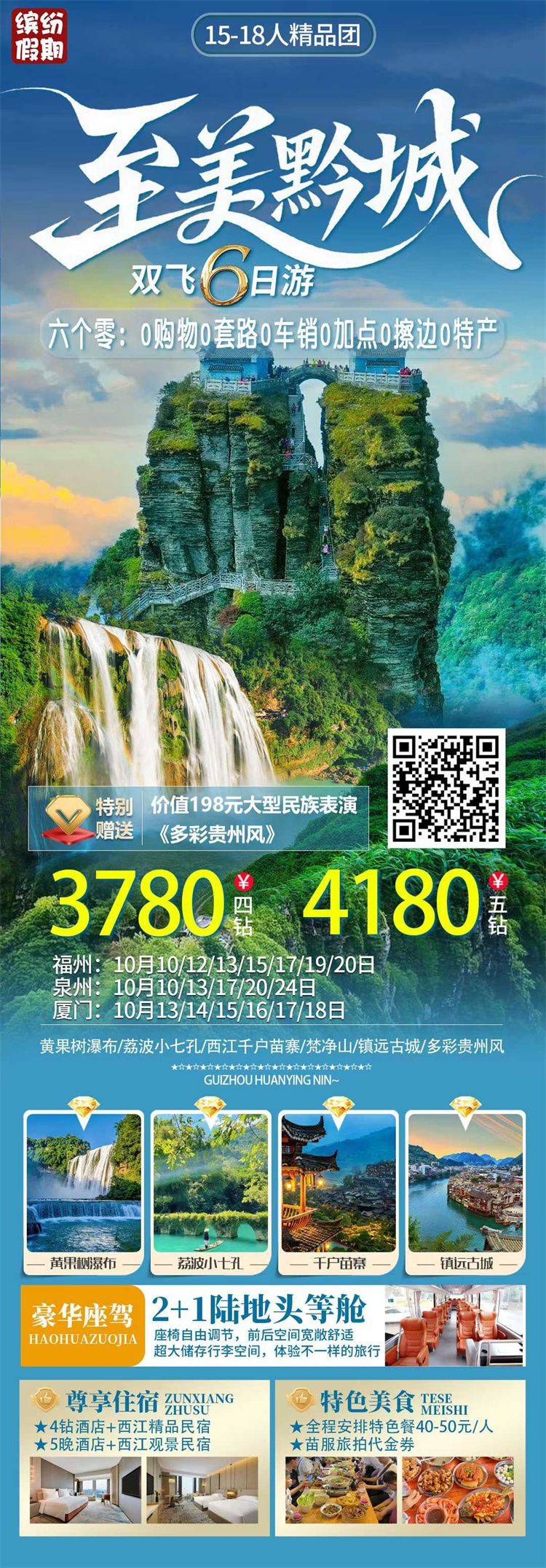 跟团游10月福建去【贵州黄果树纯玩5-6天】旅游团线路合集
