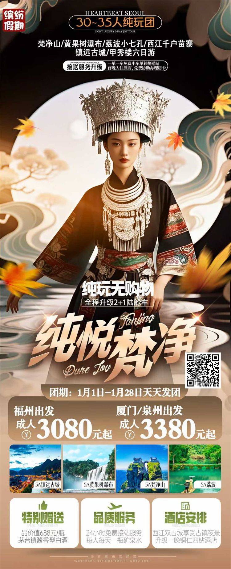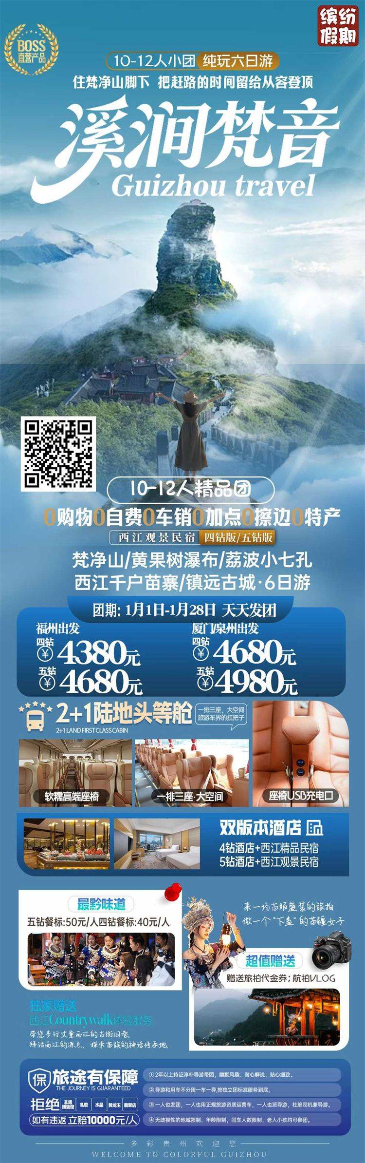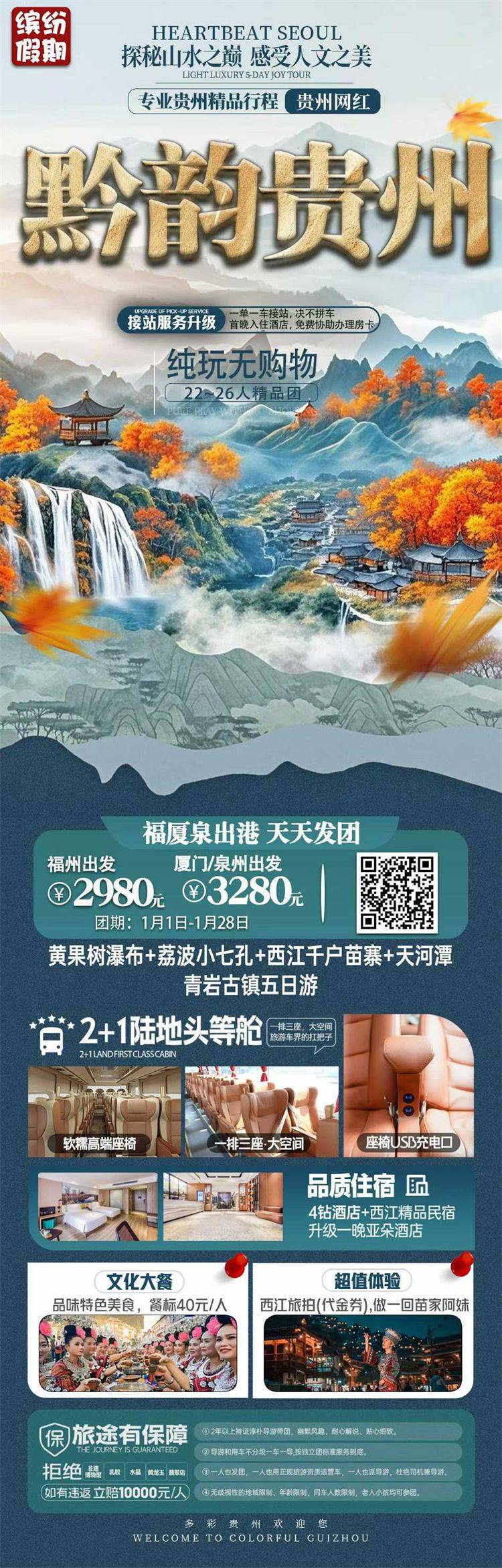 跟团游1月福建去【贵州黄果树纯玩5-6天】旅游团线路合集
