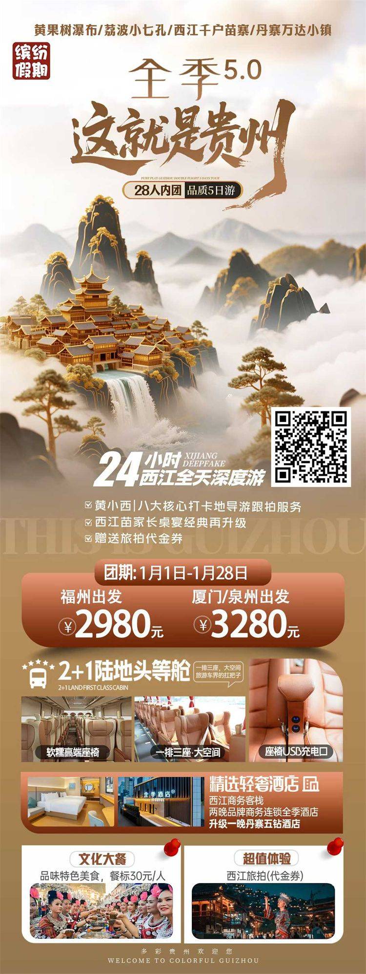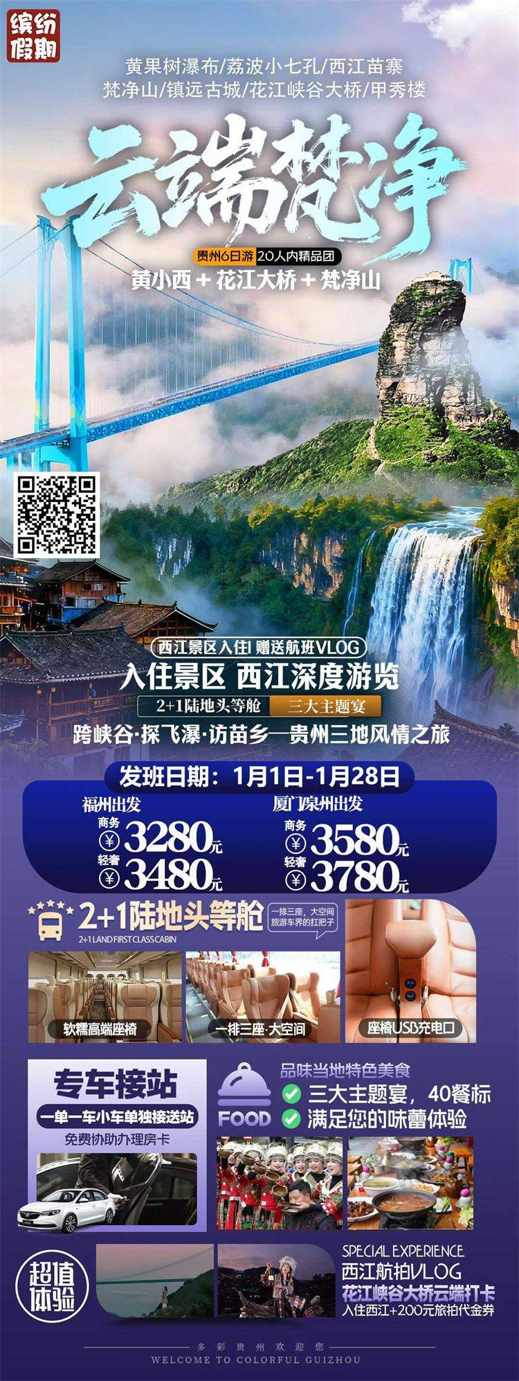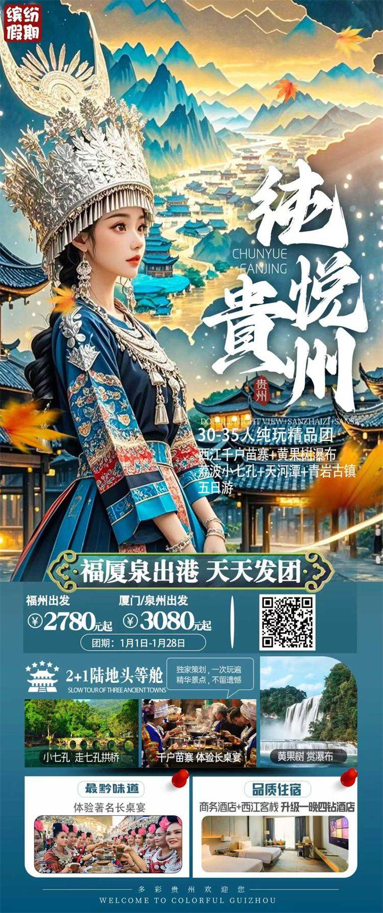 跟团游1月福建去【贵州黄果树纯玩5-6天】旅游团线路合集