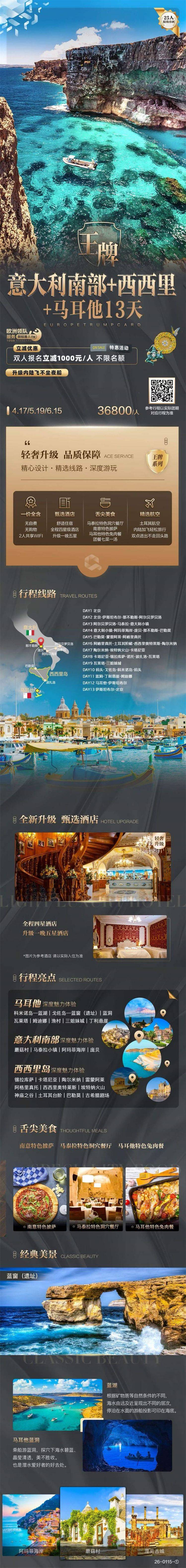 跟团游4-6月【希腊意大利+马耳他15天】 欧洲旅游团线路合集
