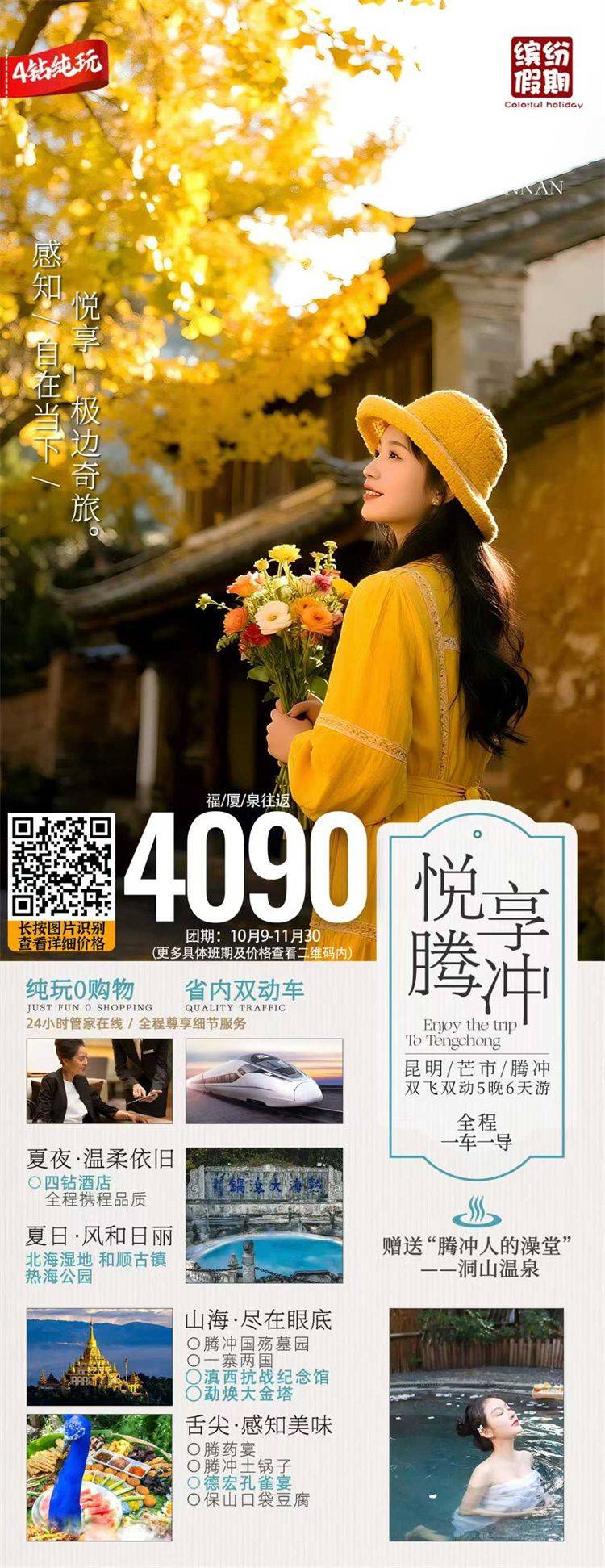 跟团游12月福建出发【腾冲瑞丽芒市玩6天】云南旅游团线路合集
