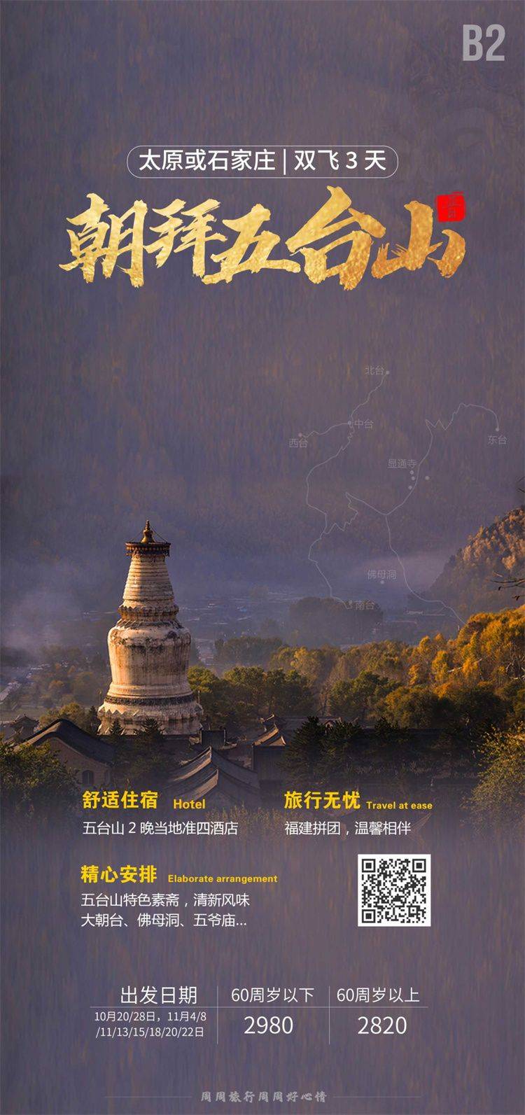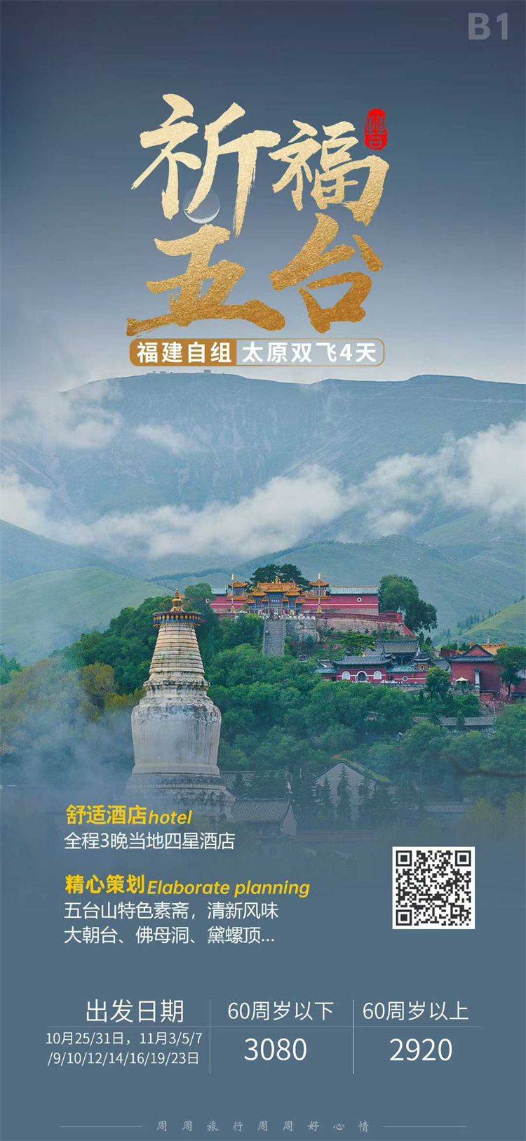 跟团游12月福建出发【五台山拜拜团3-4天】旅游团线路合集