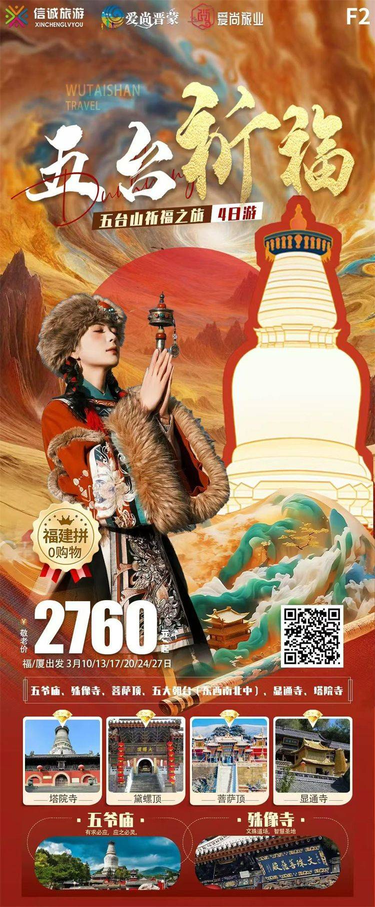 跟团游福建出发【五台山拜拜团3-4天】旅游团线路合集