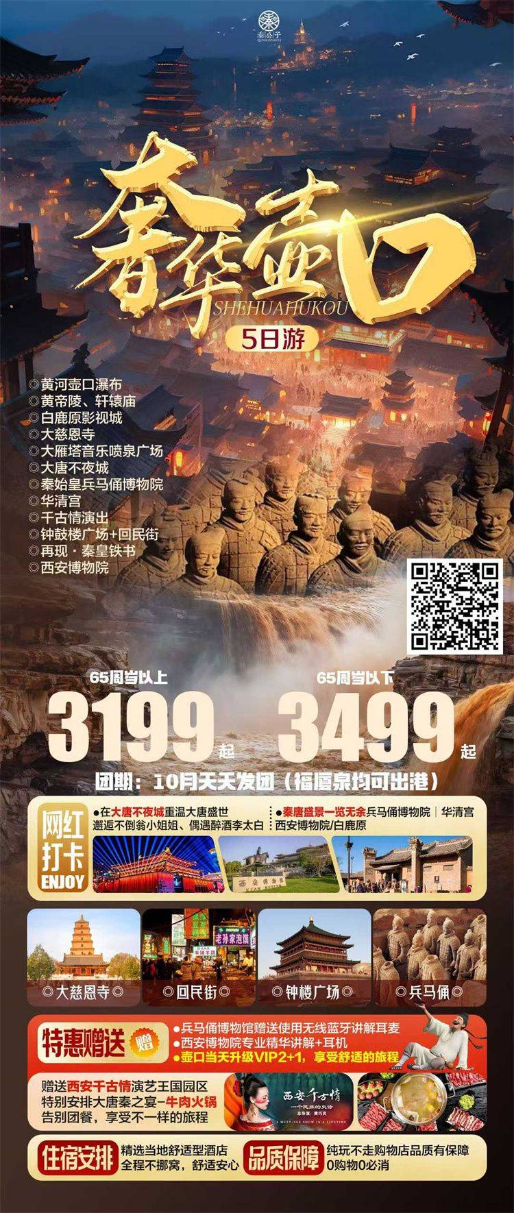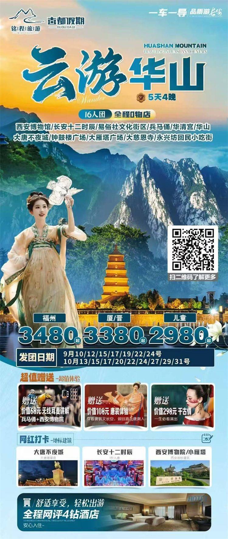 跟团游10月福建往返【西安华山精选4-5天】旅游团线路合集