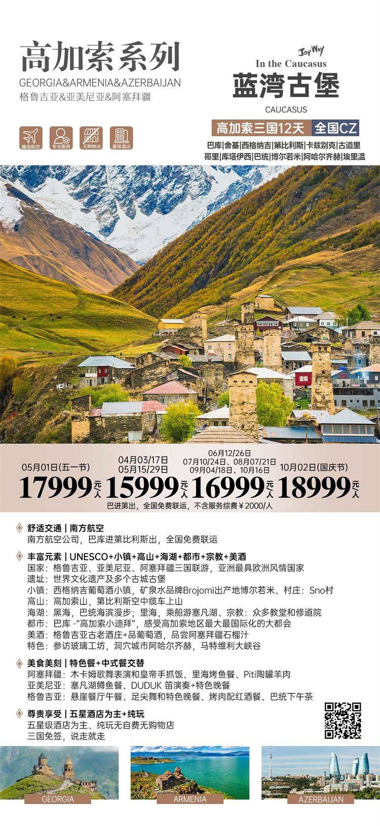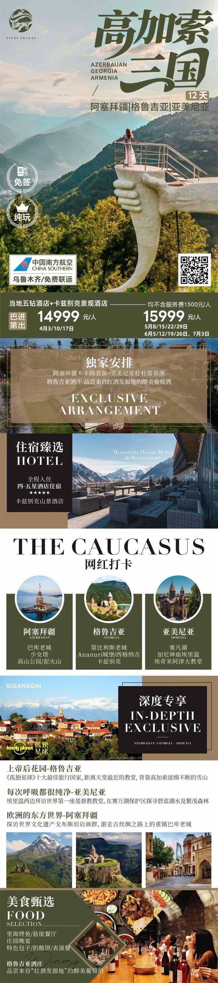 跟团游4-6月福建出发【高加索三国玩9-13天】旅游团线路合集