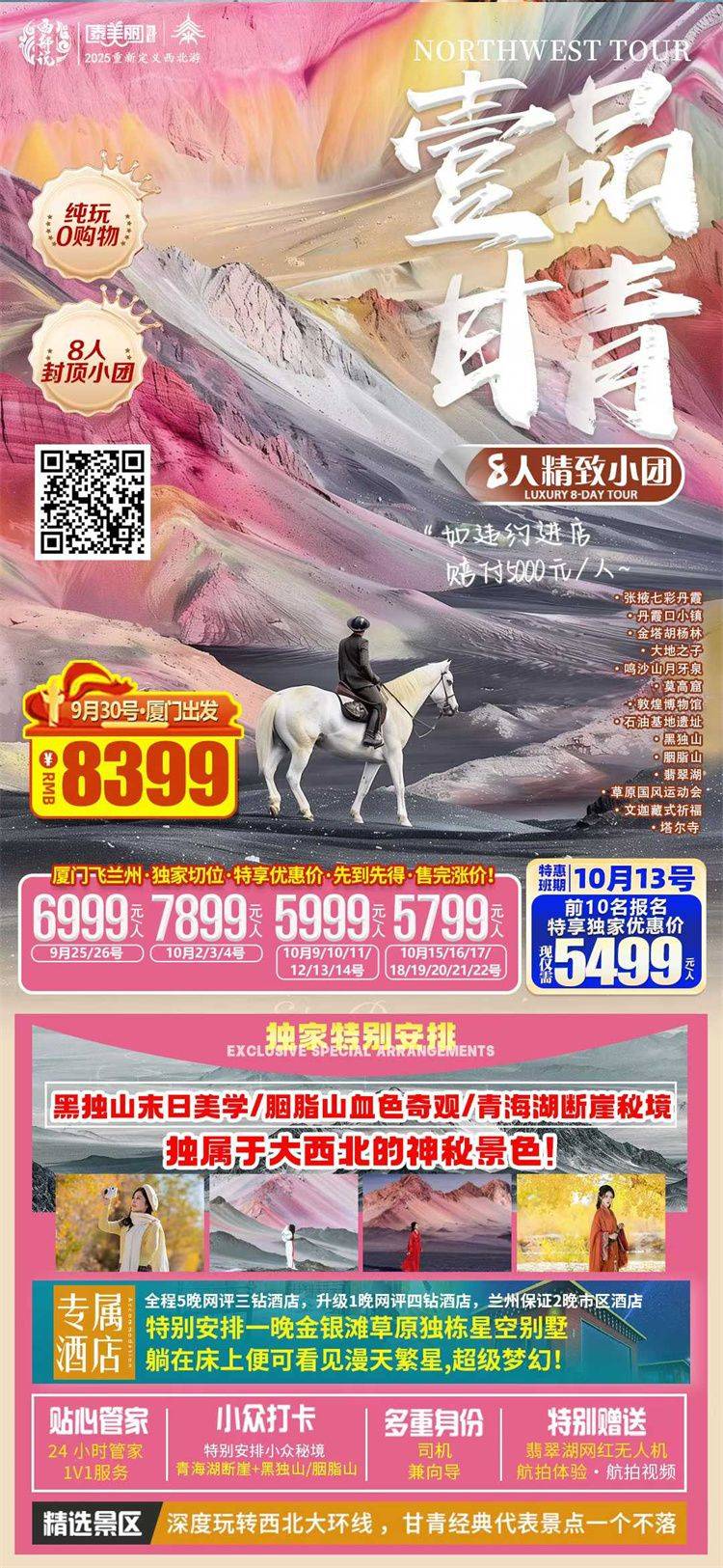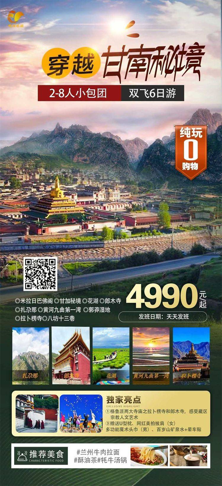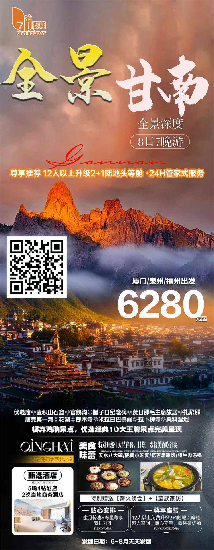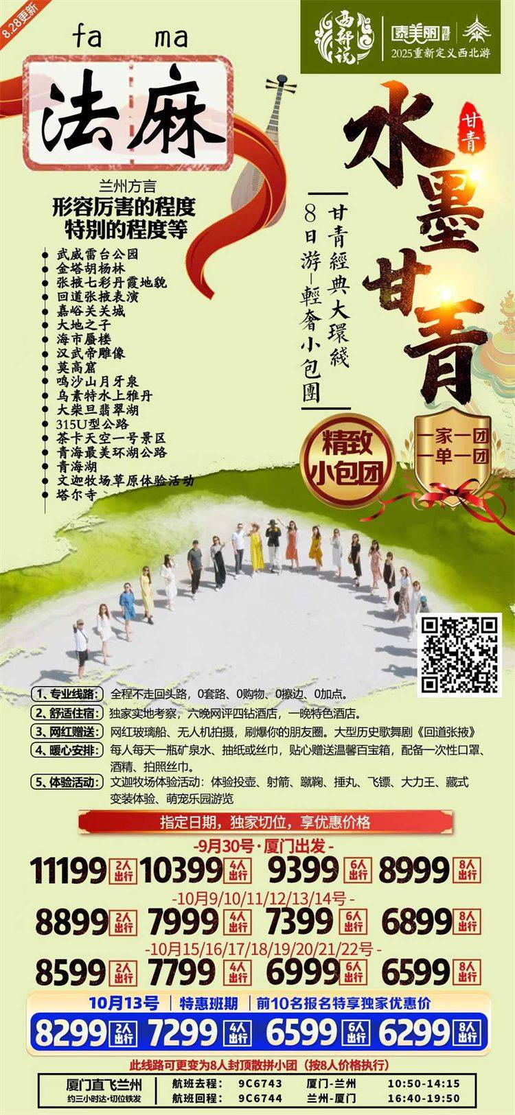 跟团游10月福建往返【西北甘南全景8天】旅游团线路合集