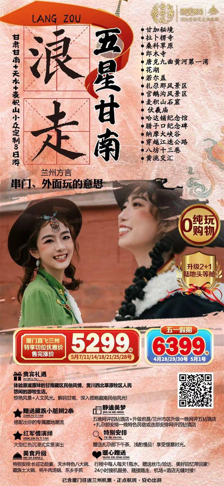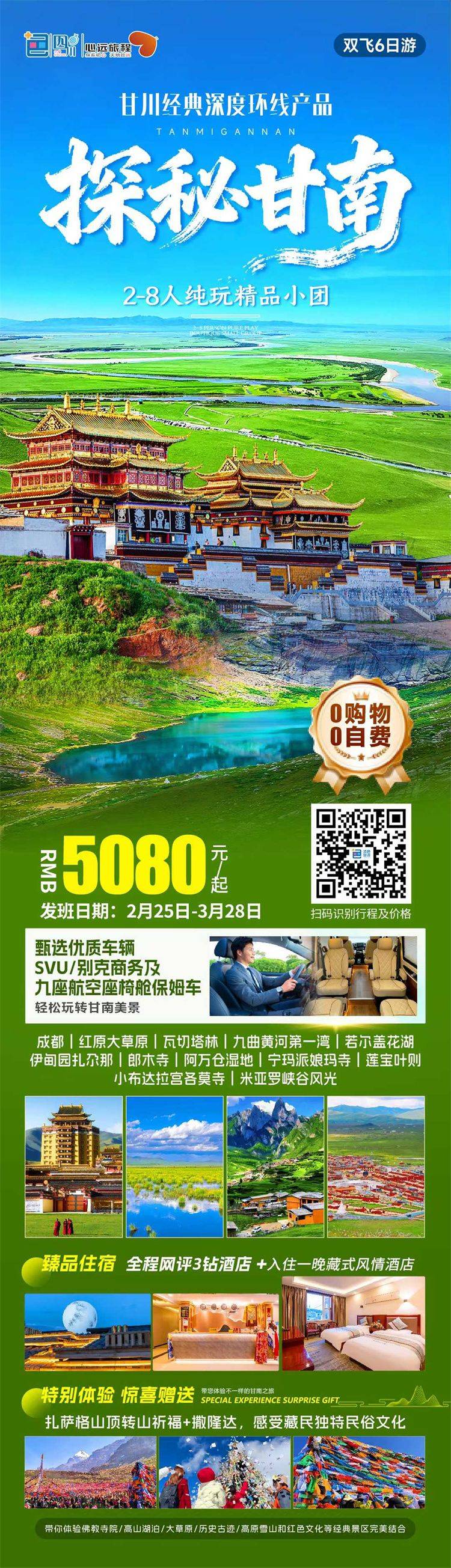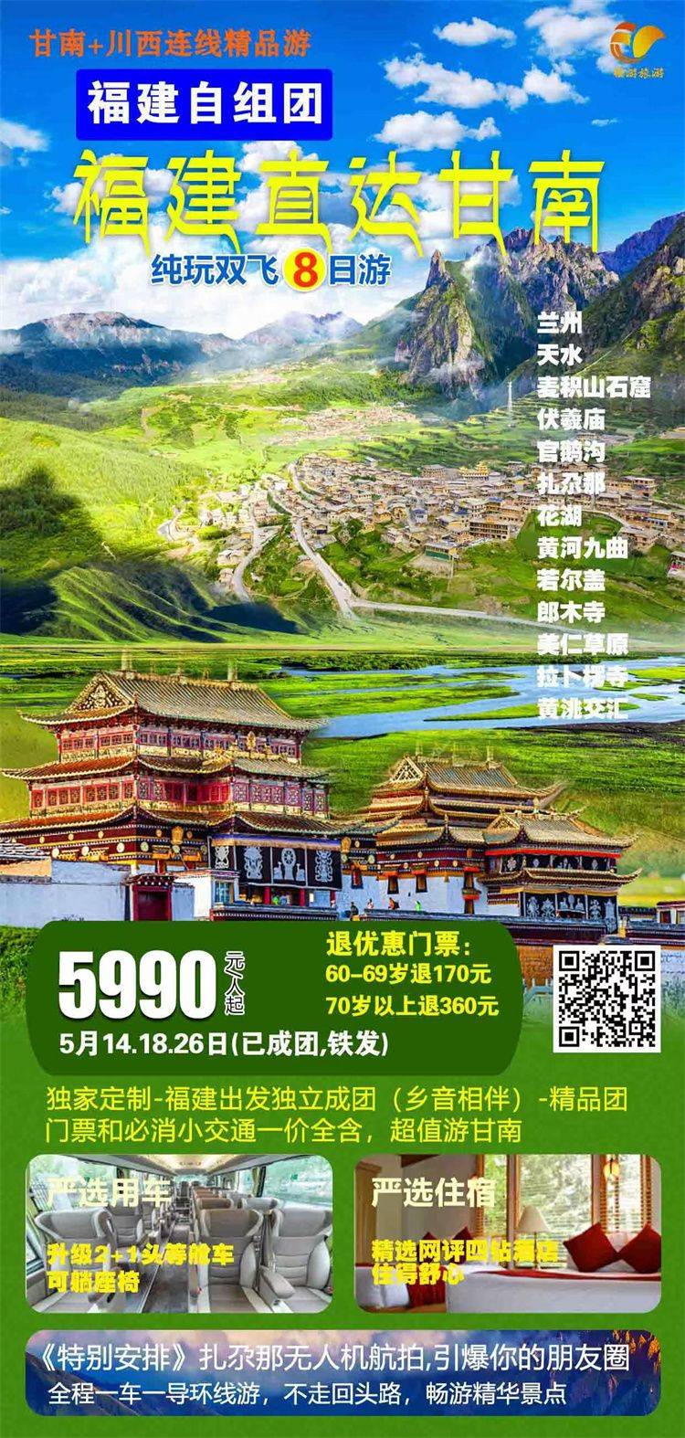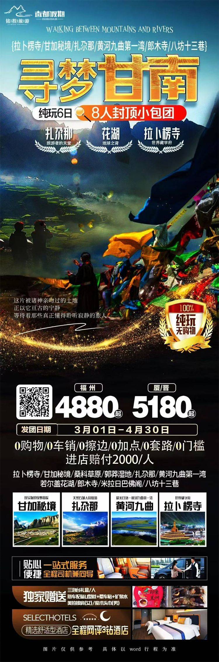 跟团游福建往返【西北甘南全景8天】旅游团线路合集