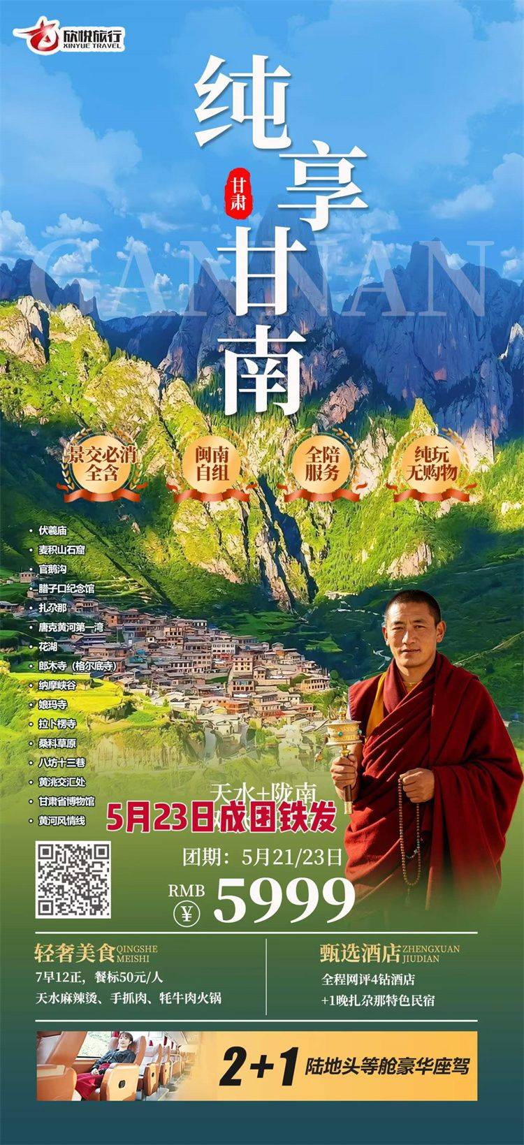 提示:旅游团包含和不包含内容,以海报图片行程内标注为准
