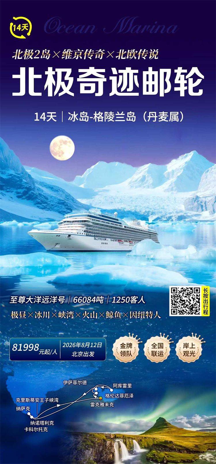 跟团游北京上海出发【北极航线】北极三岛12-18天国际邮轮