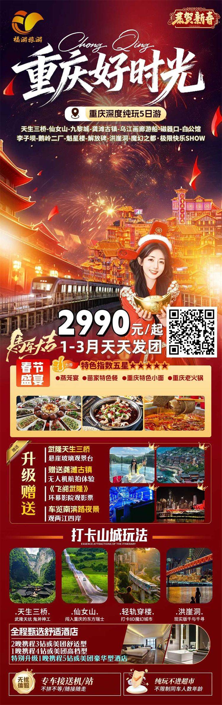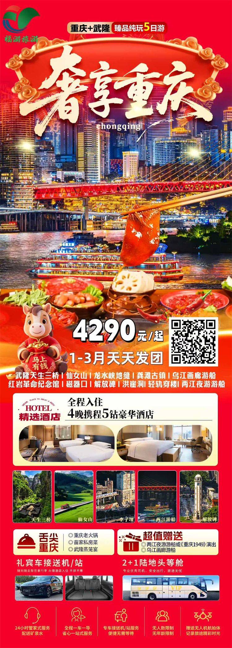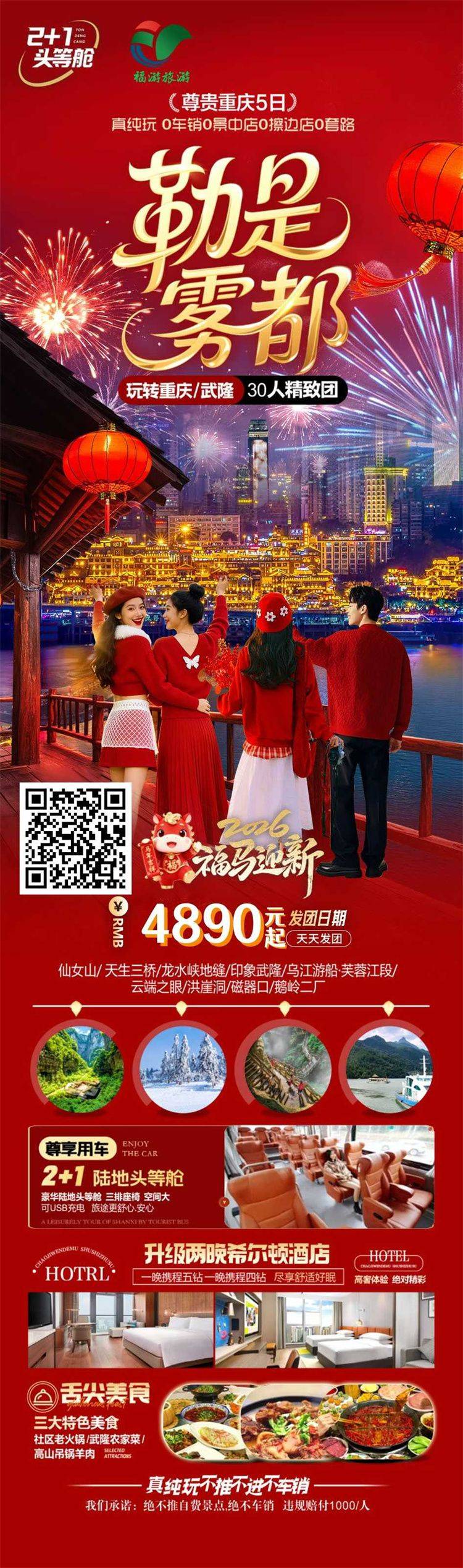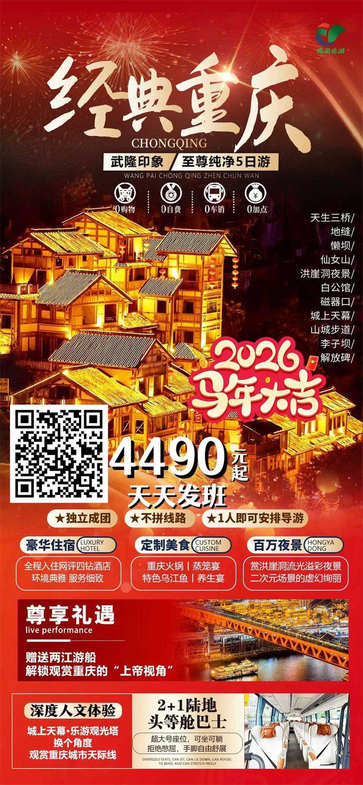跟团游寒假春节福建去【重庆+武隆玩4-6天】旅游团线路合集