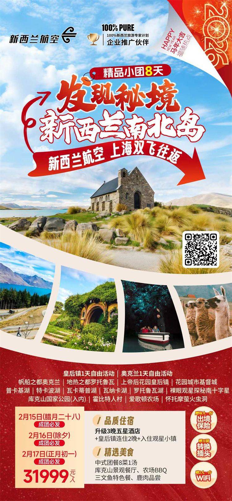跟团游寒假春节【新西兰一地9-12天】澳洲旅游团线路合集