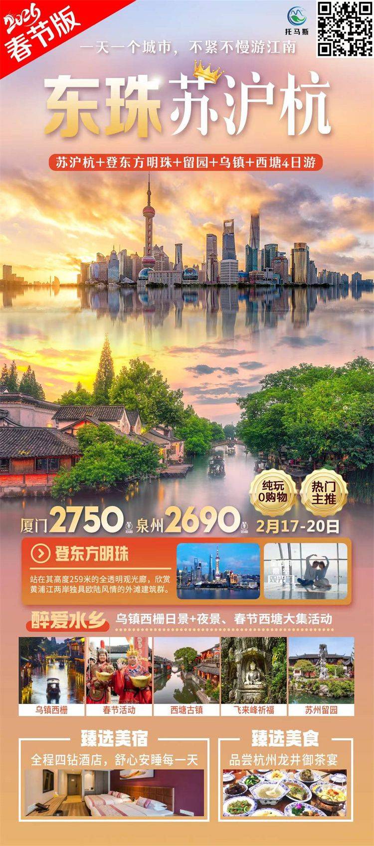 跟团游春节出发【华东江南4天】旅游团线路合集