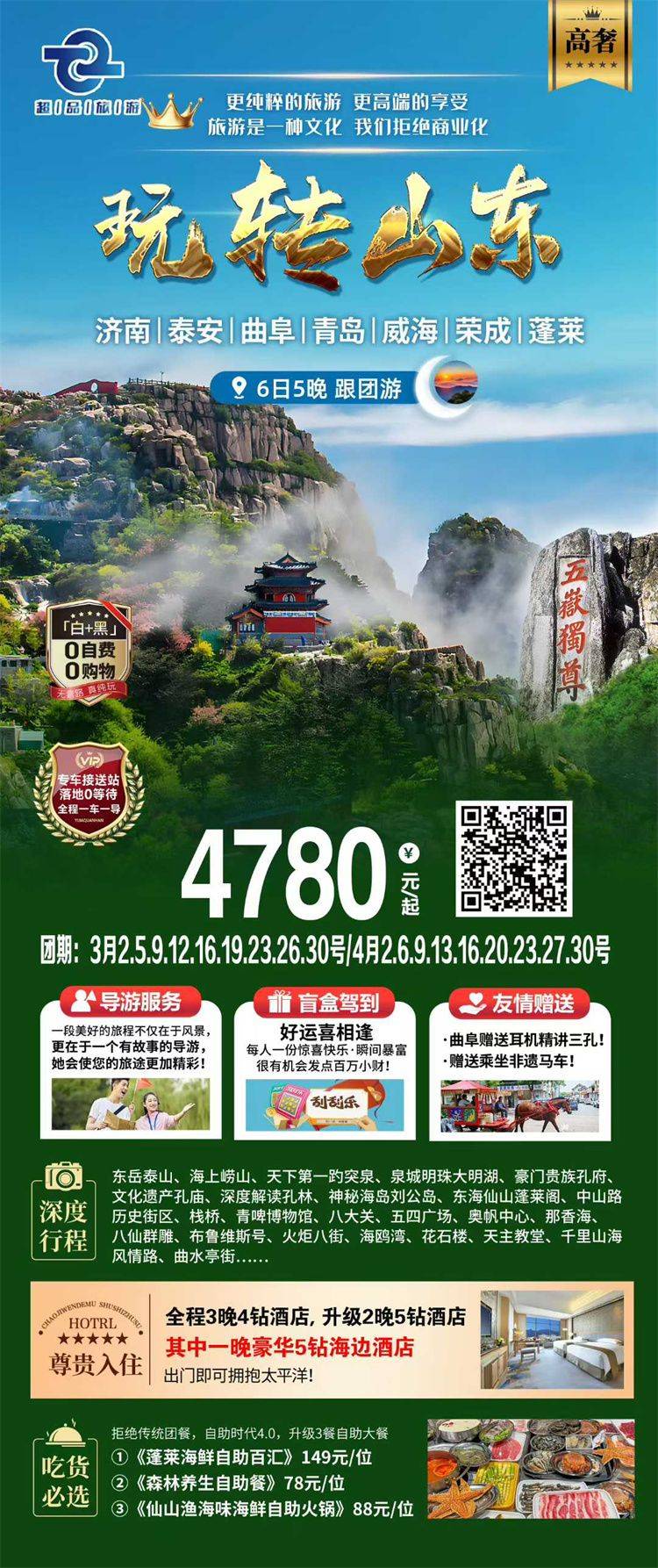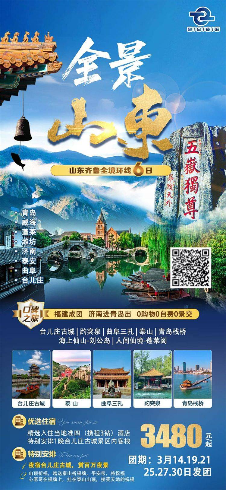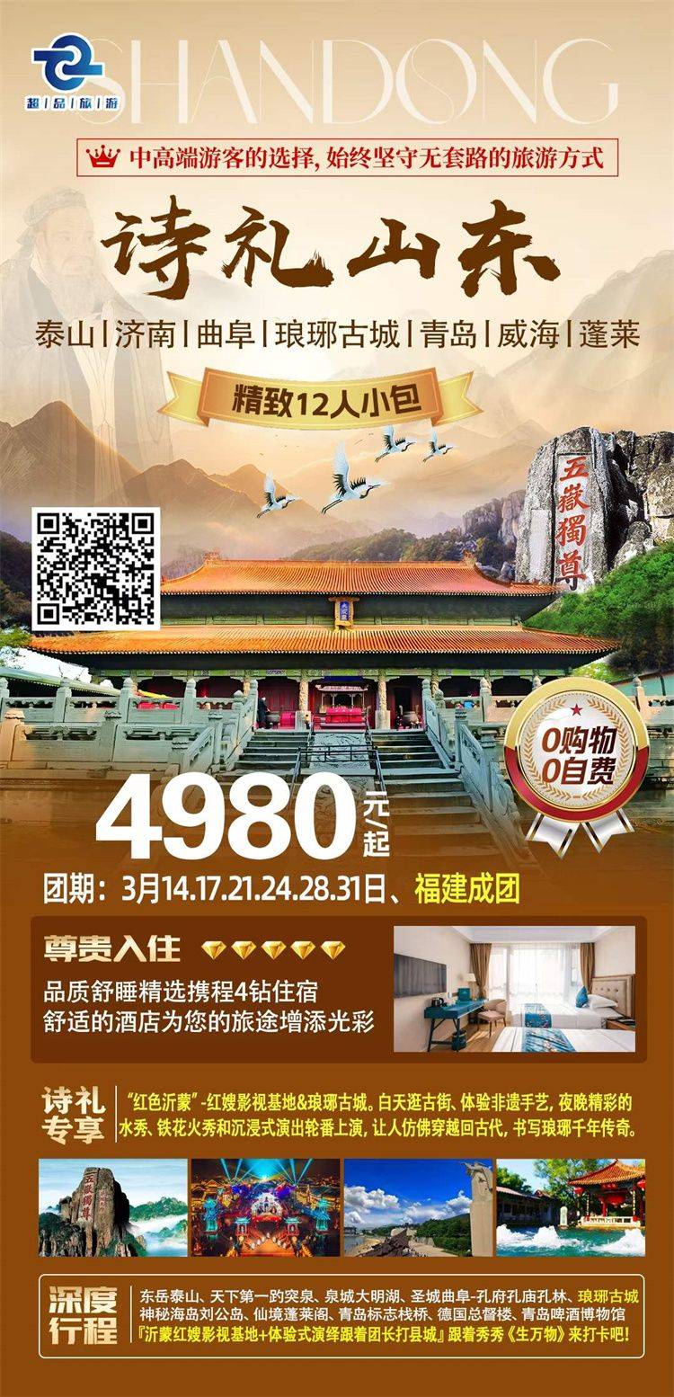 跟团游3-4月福建去【山东全景玩5-6天】旅游团线路合集