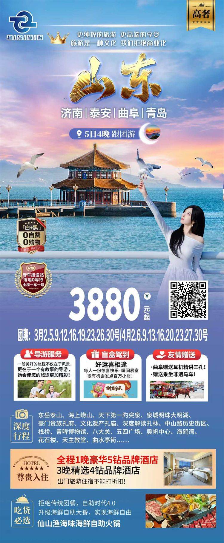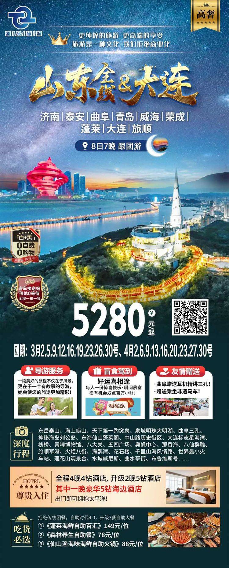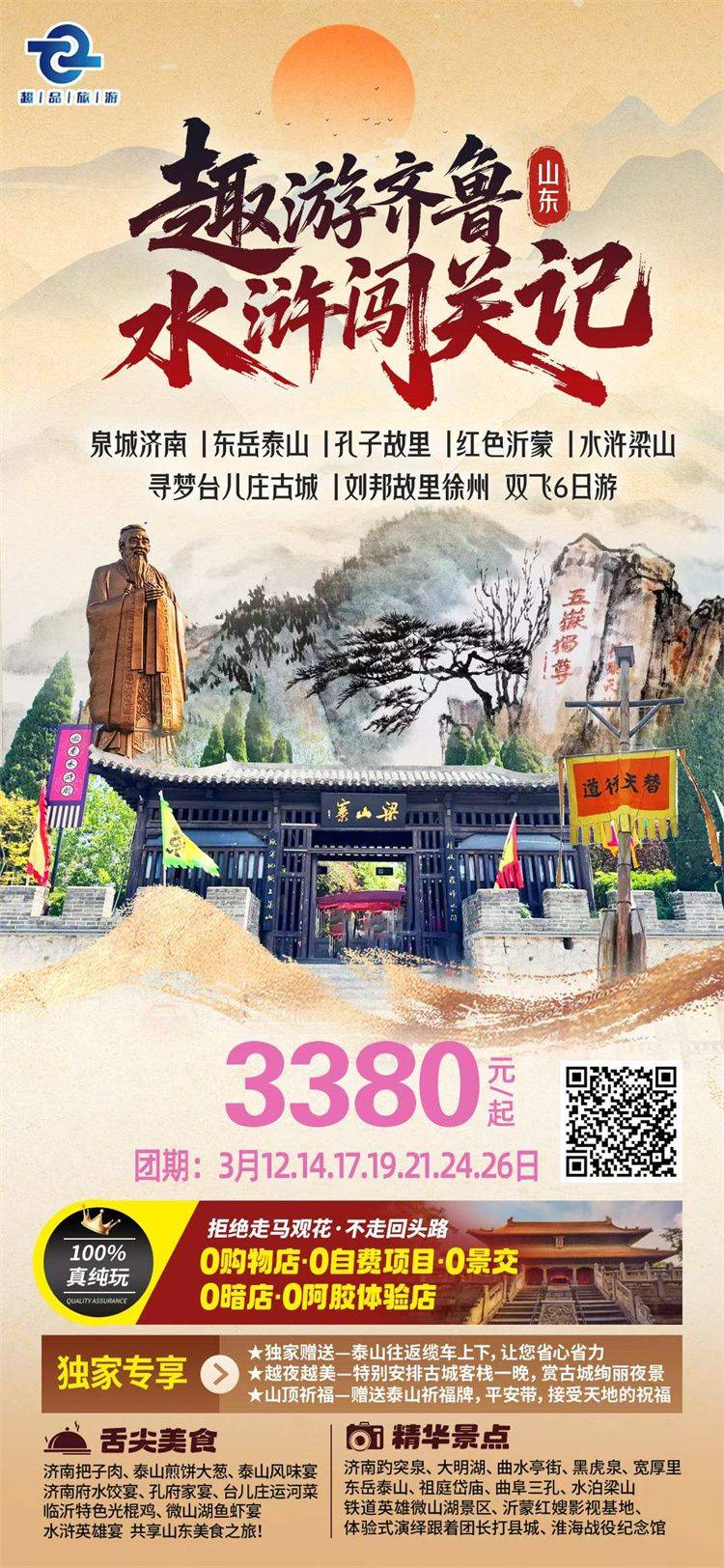 跟团游3-4月福建去【山东全景玩5-6天】旅游团线路合集