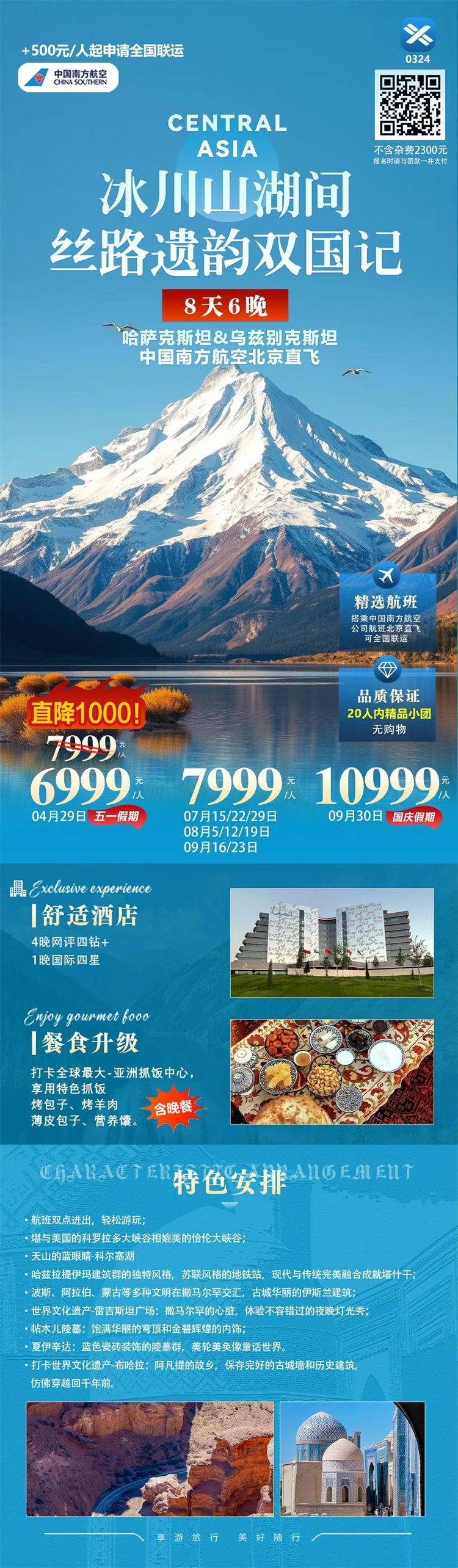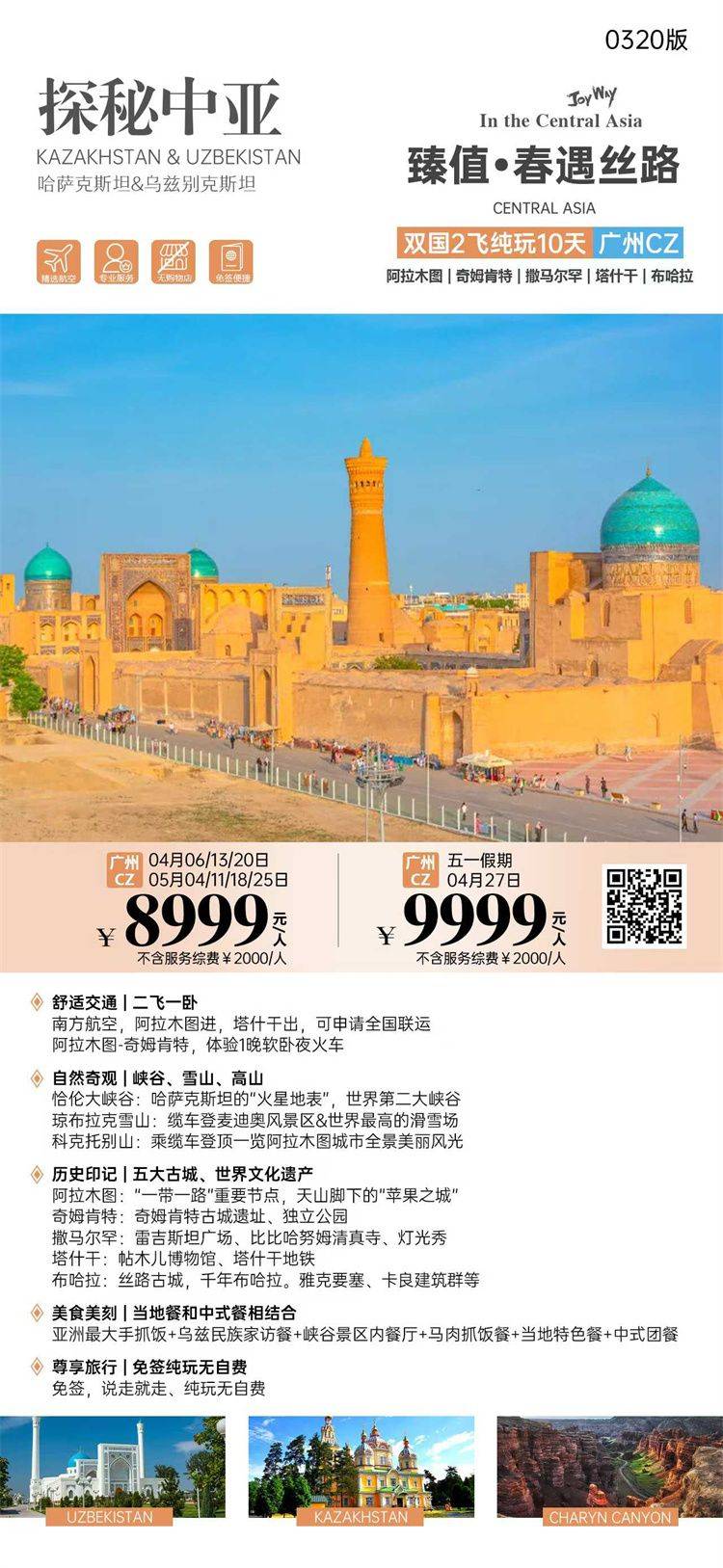 跟团游4-6月福建去【中亚两国-五国9-17天】旅游团线路合集