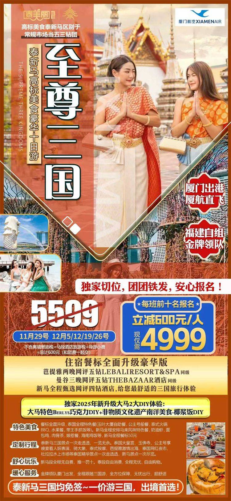 跟团游12月福建出发【新马泰玩10天】旅游团线路合集