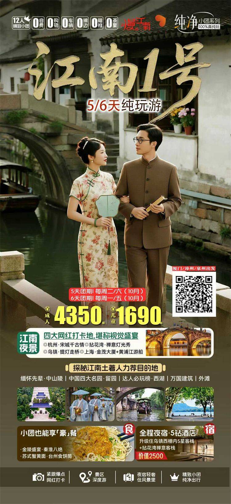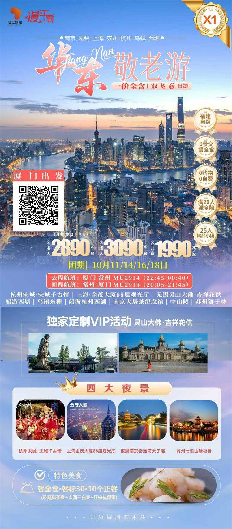 跟团游10月福建往返【华东5-6天五市联游】旅游团线路合集