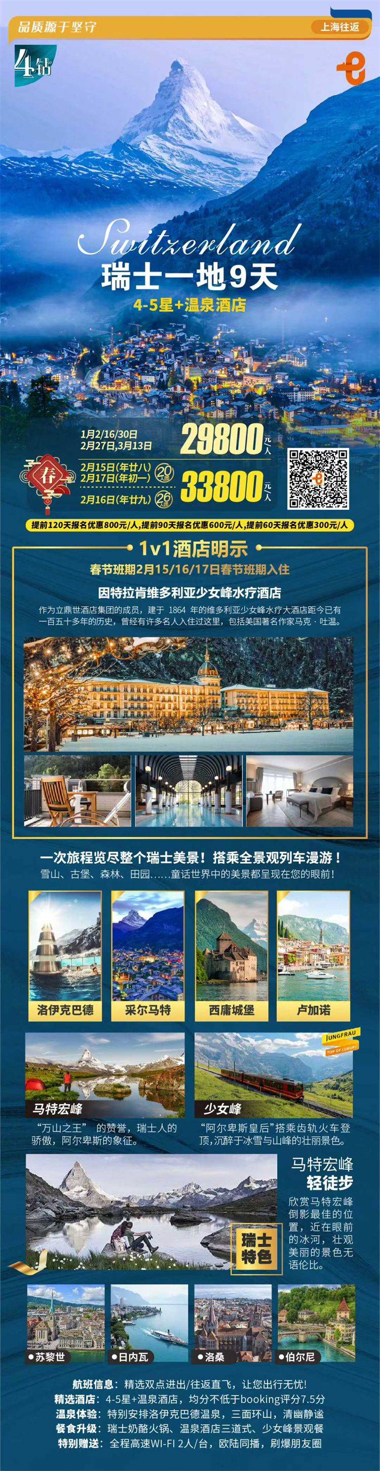 跟团游1月-3月广深往返【瑞士一地10天】欧洲旅游团线路合集