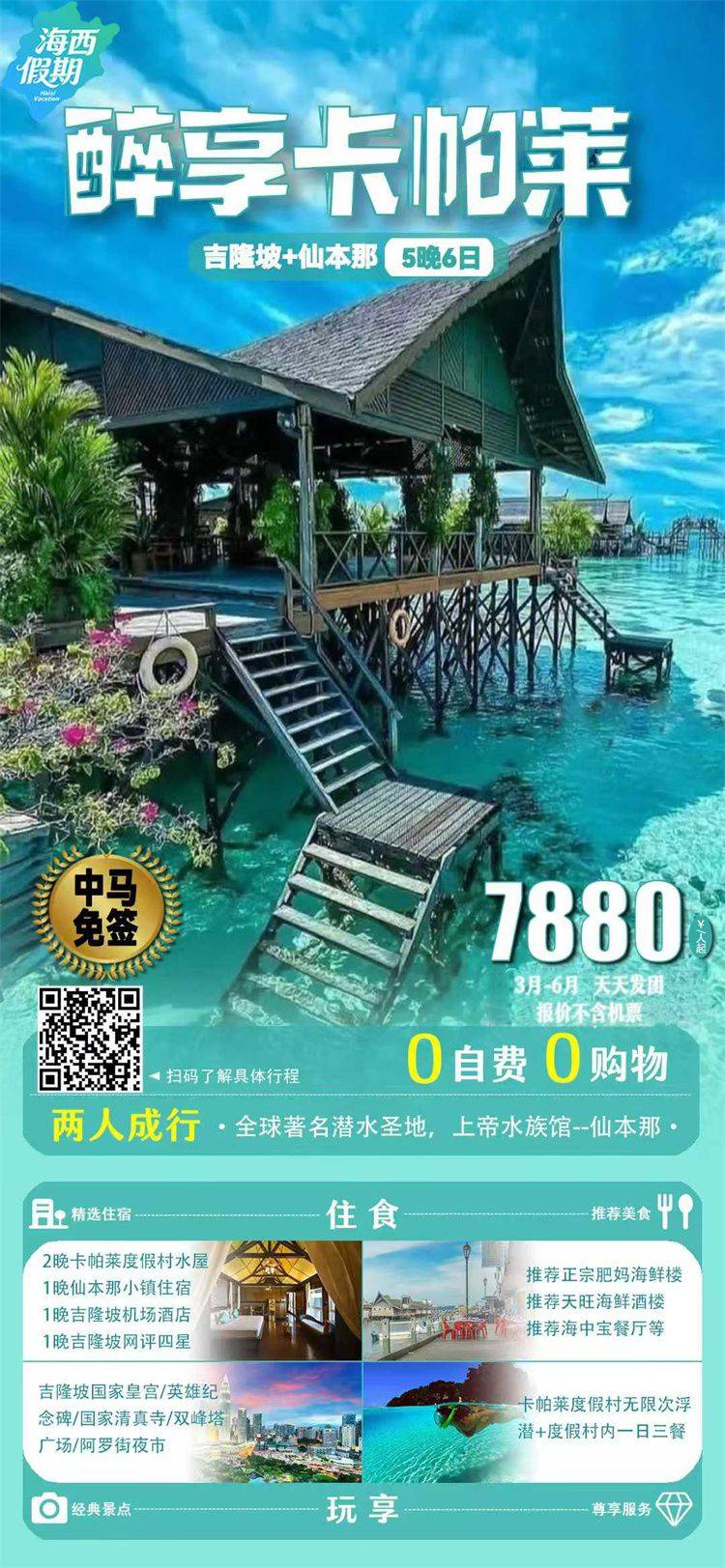 跟团游3-4月福建去【沙巴仙本那6-7天】旅游团线路合集