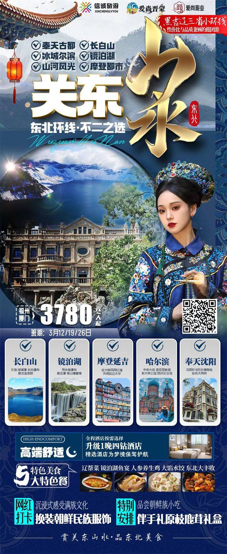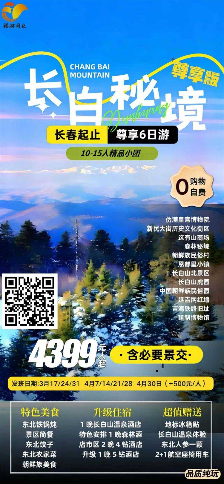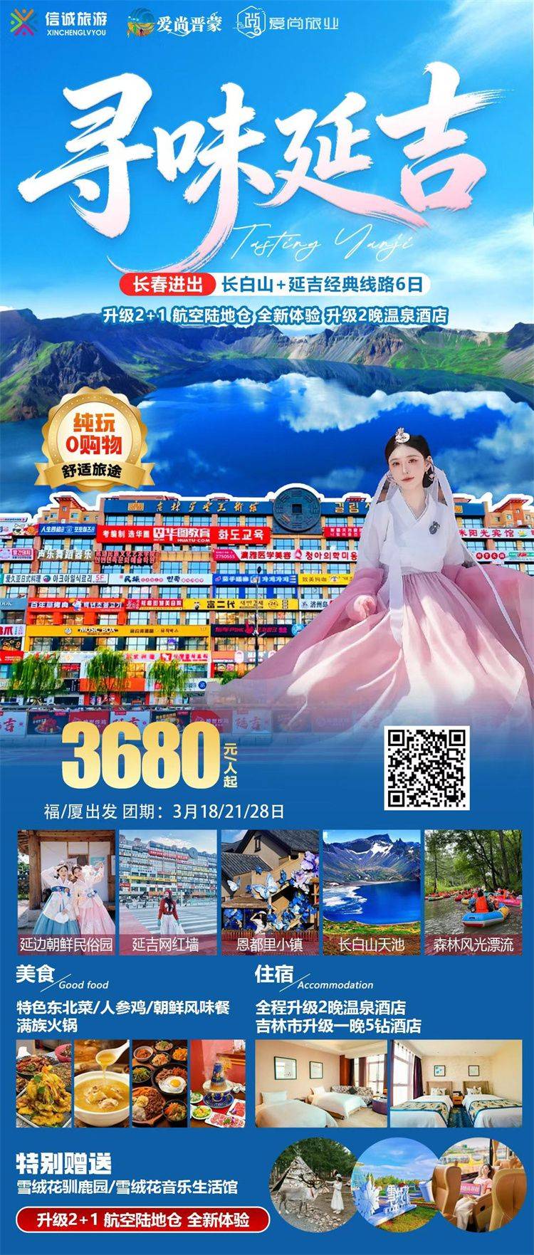 跟团游3-4月福建出发【东北长白山延吉玩6-8天】旅游团线路合集