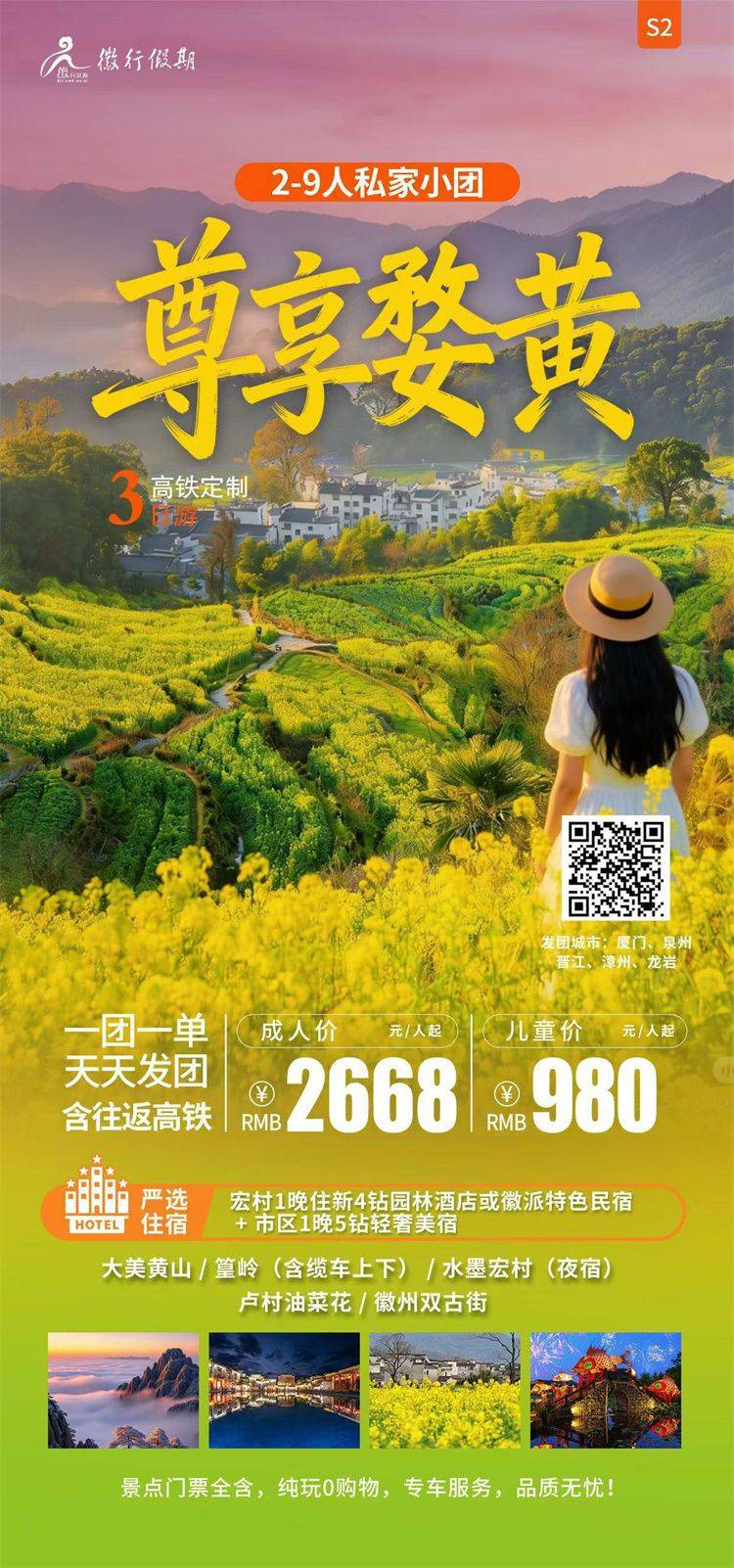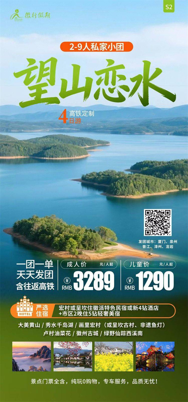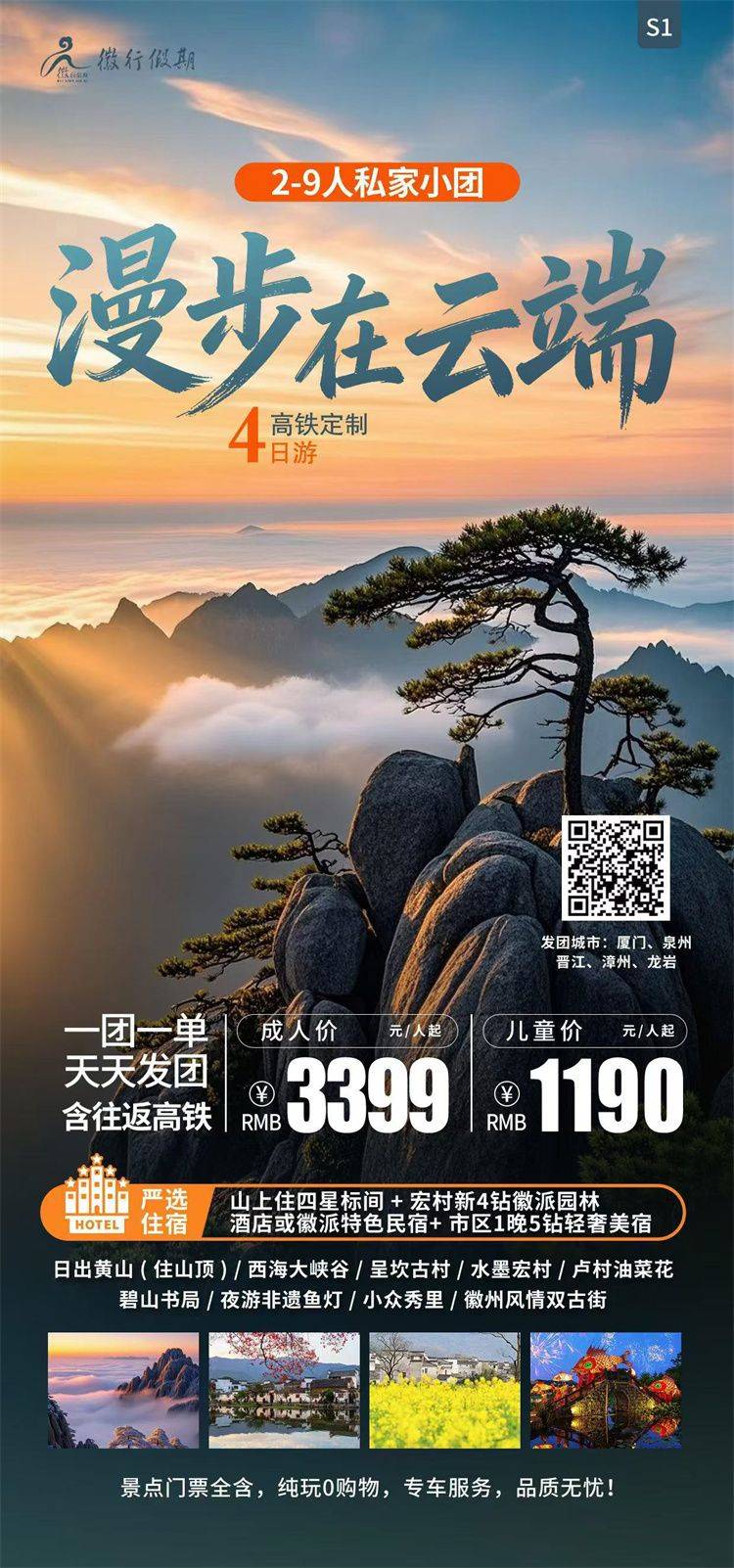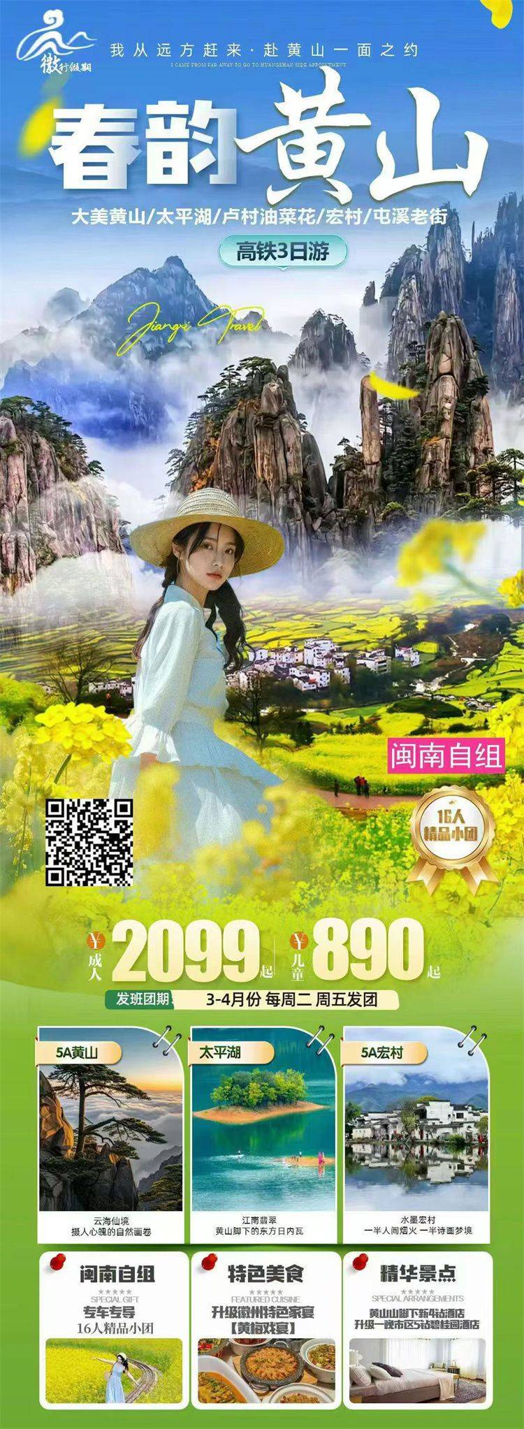 跟团游4月福建往返【黄山纯玩3-4天】旅游团线路合集