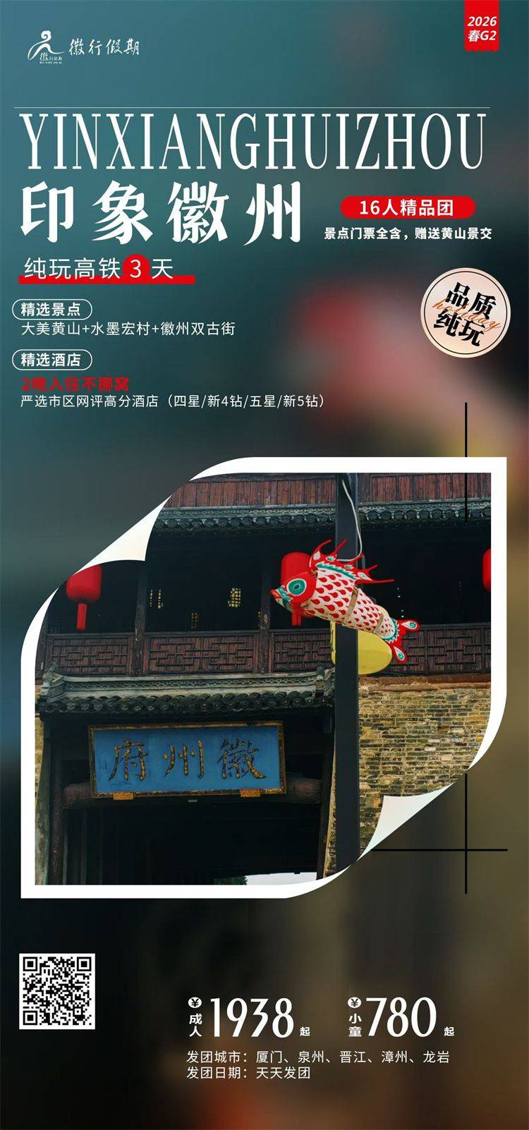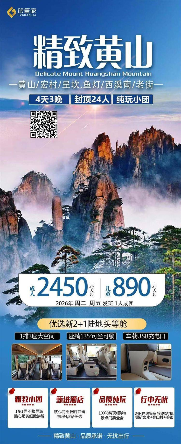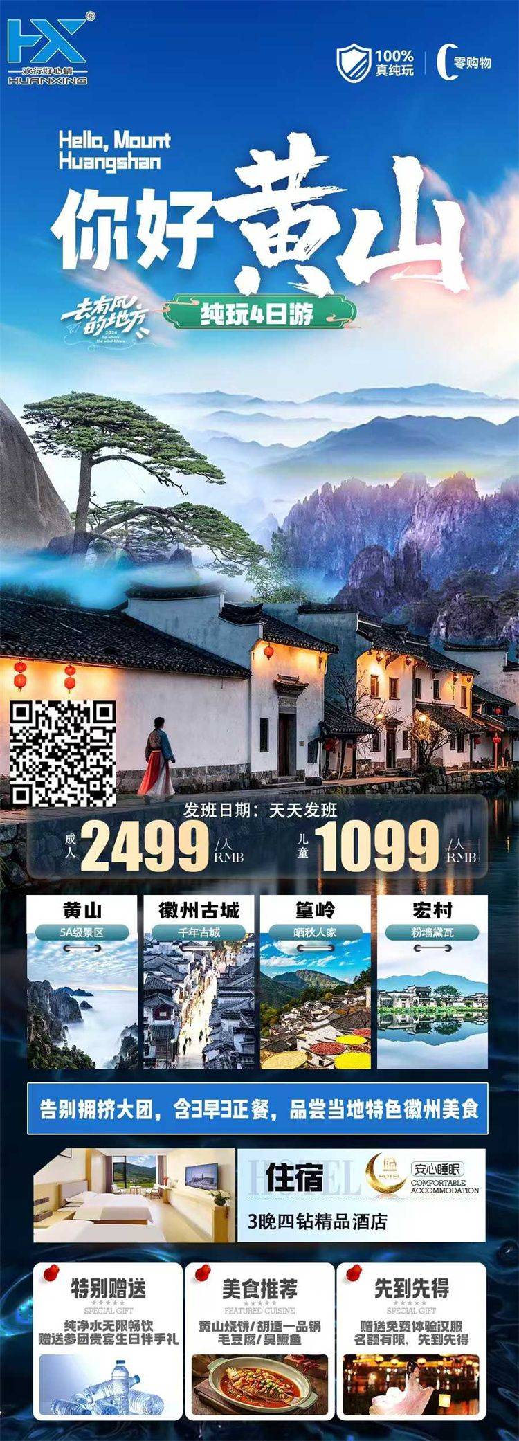 跟团游4月福建往返【黄山纯玩3-4天】旅游团线路合集