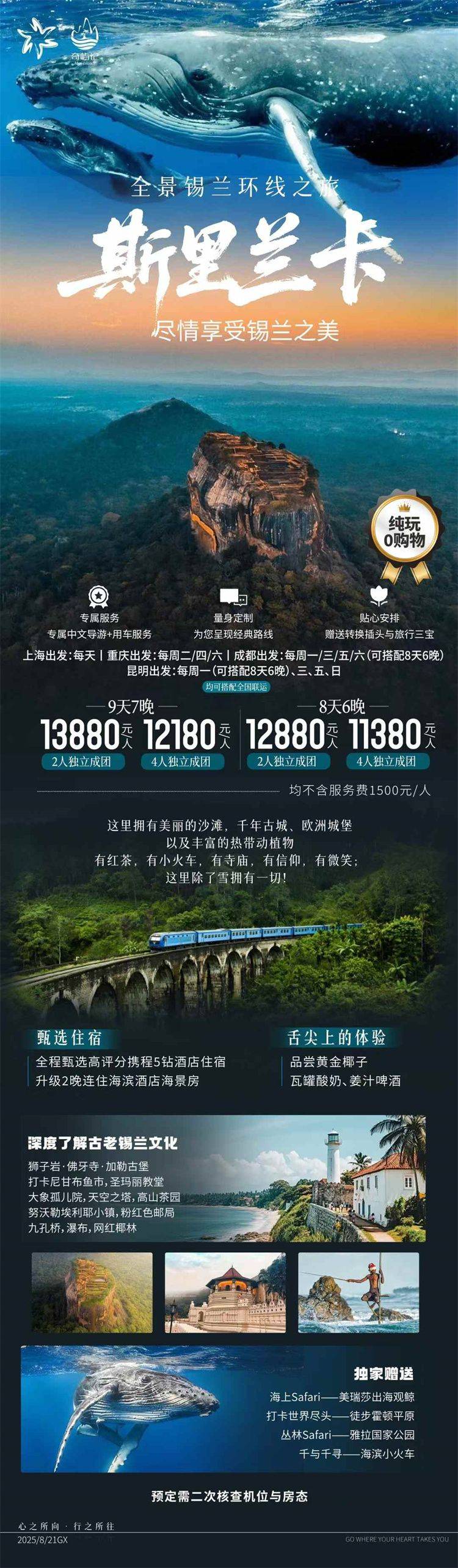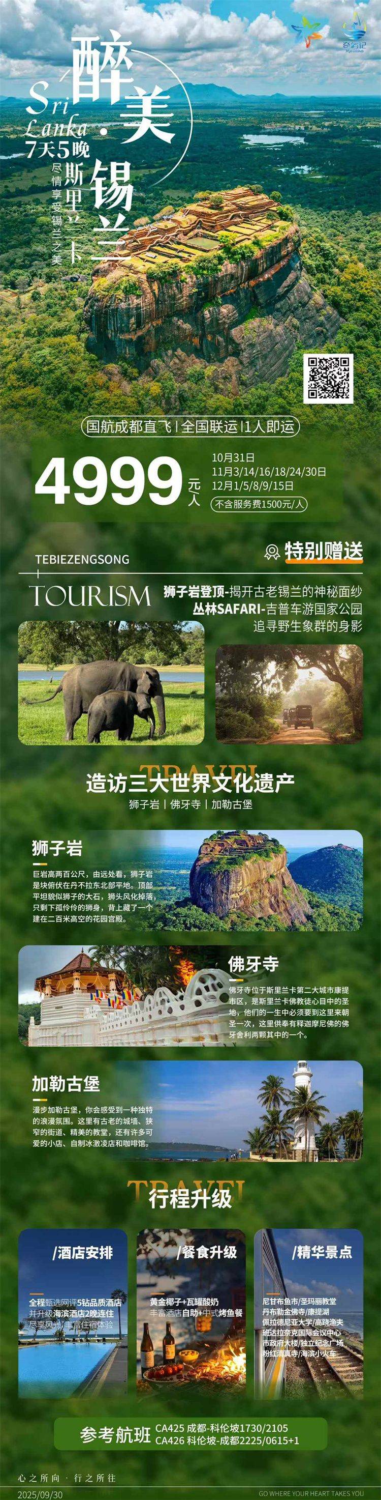 跟团游10-12月福建出发【斯里兰卡7天5晚】旅游团线路合集