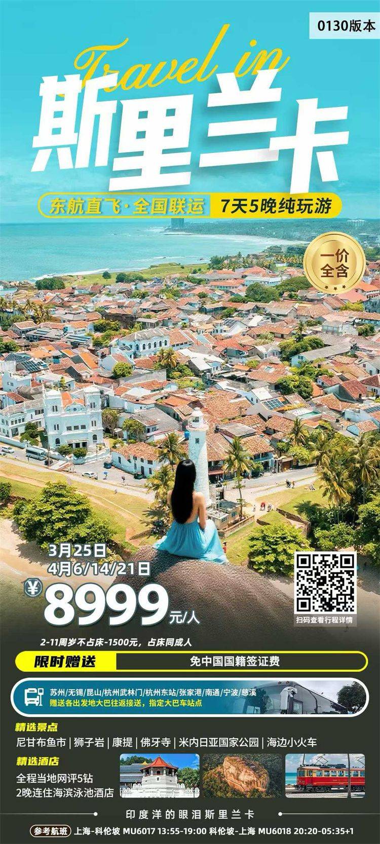 跟团游3月福建出发【斯里兰卡7-9天】旅游团线路合集