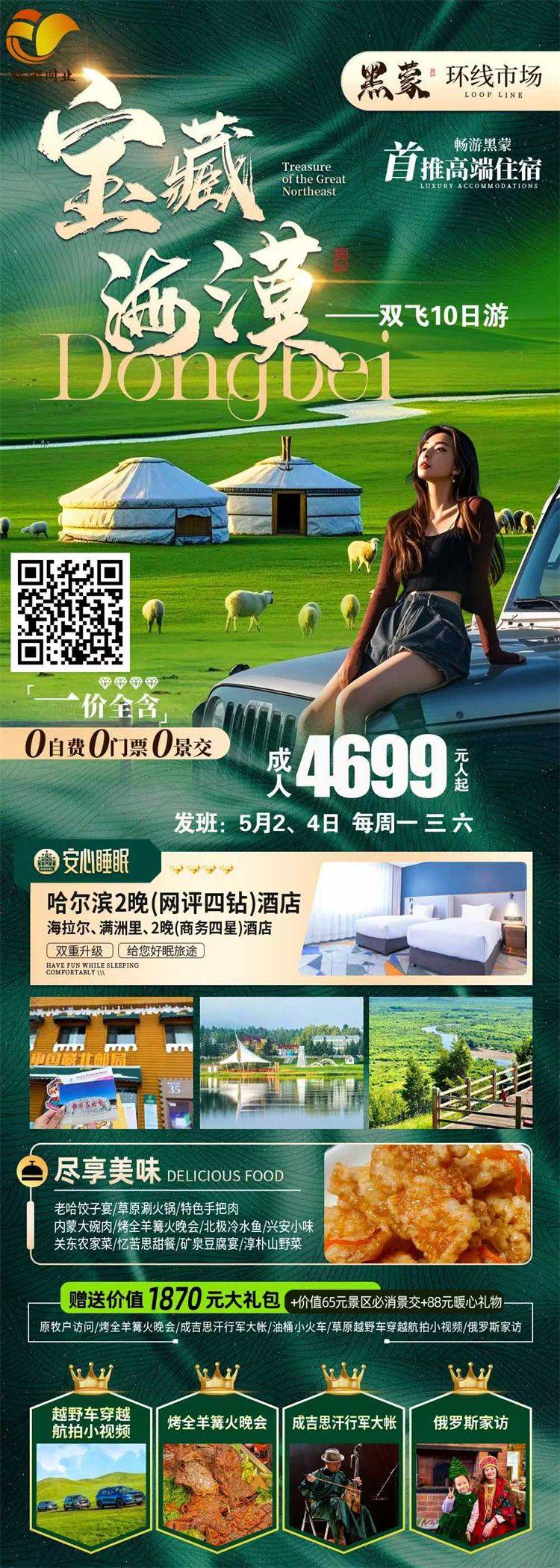 •交 通:含出发地-目的地往返大交通(机票或动车)