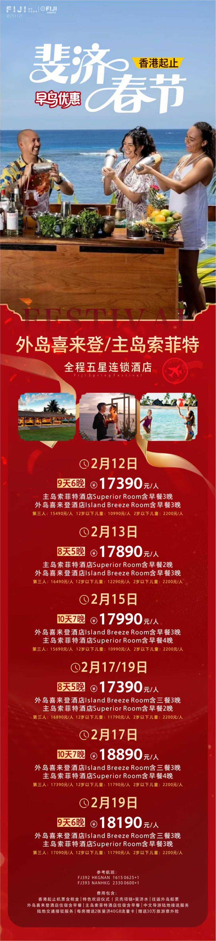 跟团游春节出发【斐济海岛度假8天】旅游团线路合集