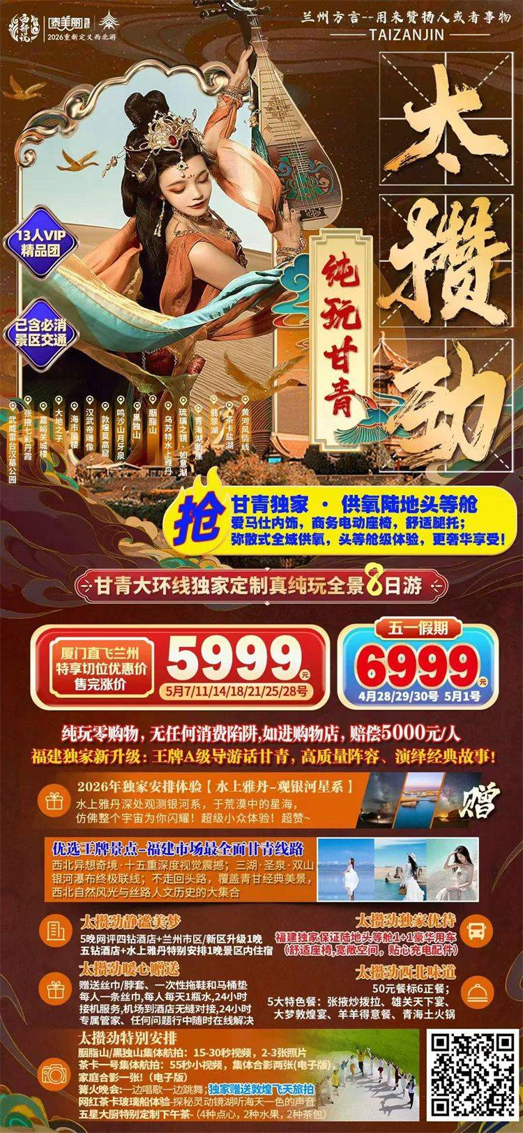 跟团游5月福建去【甘肃+青海玩8天】甘青旅游团线路合集