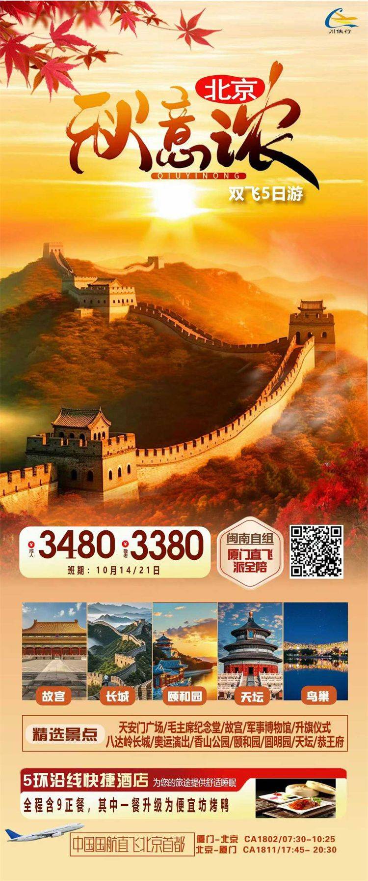 跟团游10月福建往返【北京纯玩5-6天】旅游团线路合集