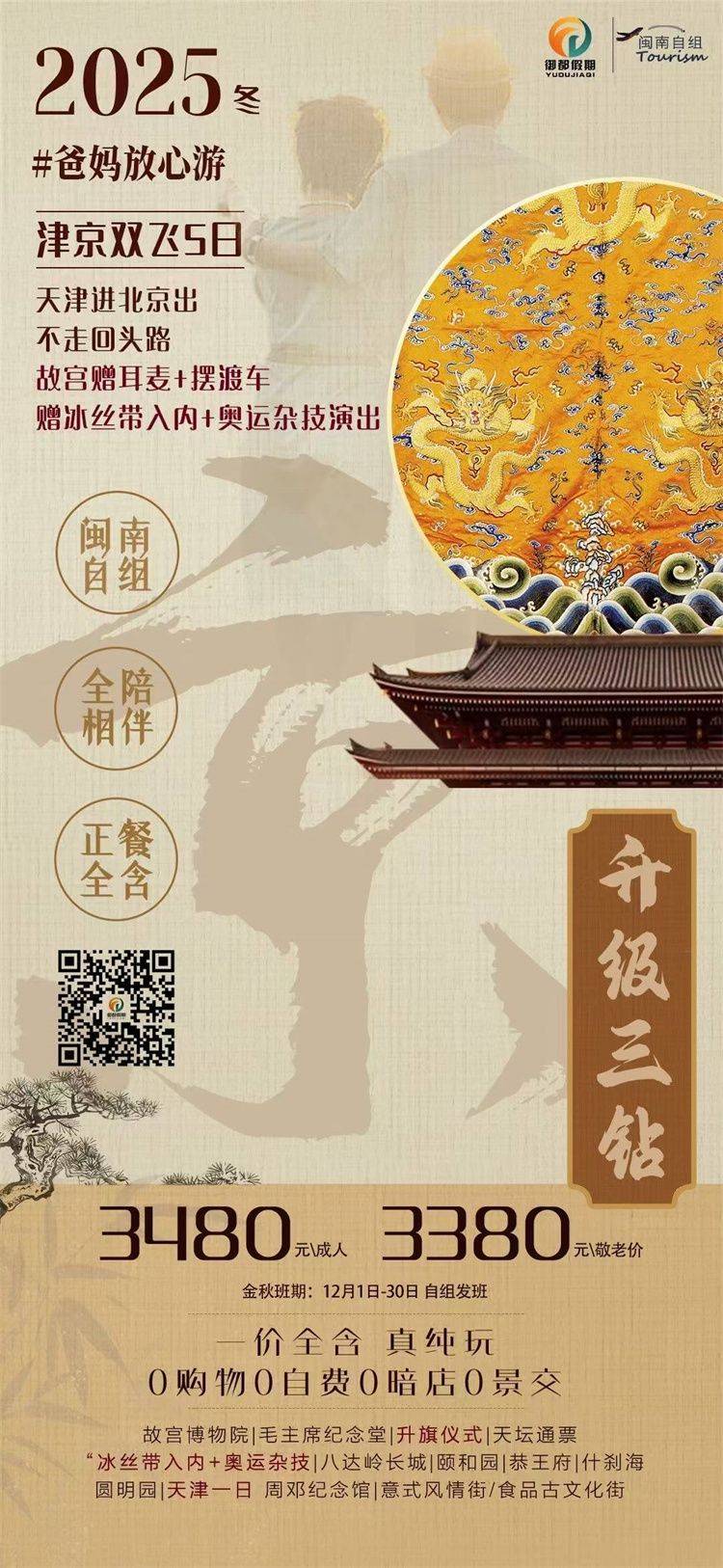 •综 费:以上价格为成本报价,不含综合服务费,报名时和团款一起交付