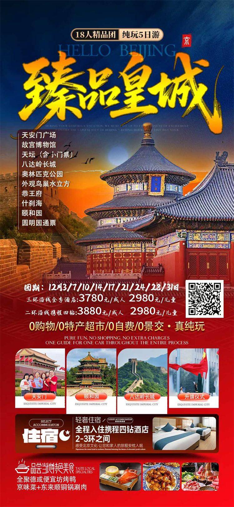 ★用餐:境内用餐:正常十人一桌,八菜一汤,人数不足十人时,菜数递减或在每人用餐标准不变的前提下调整餐食的分量或酌情退餐费,境外用餐按照当地实际情况而定安排用餐。