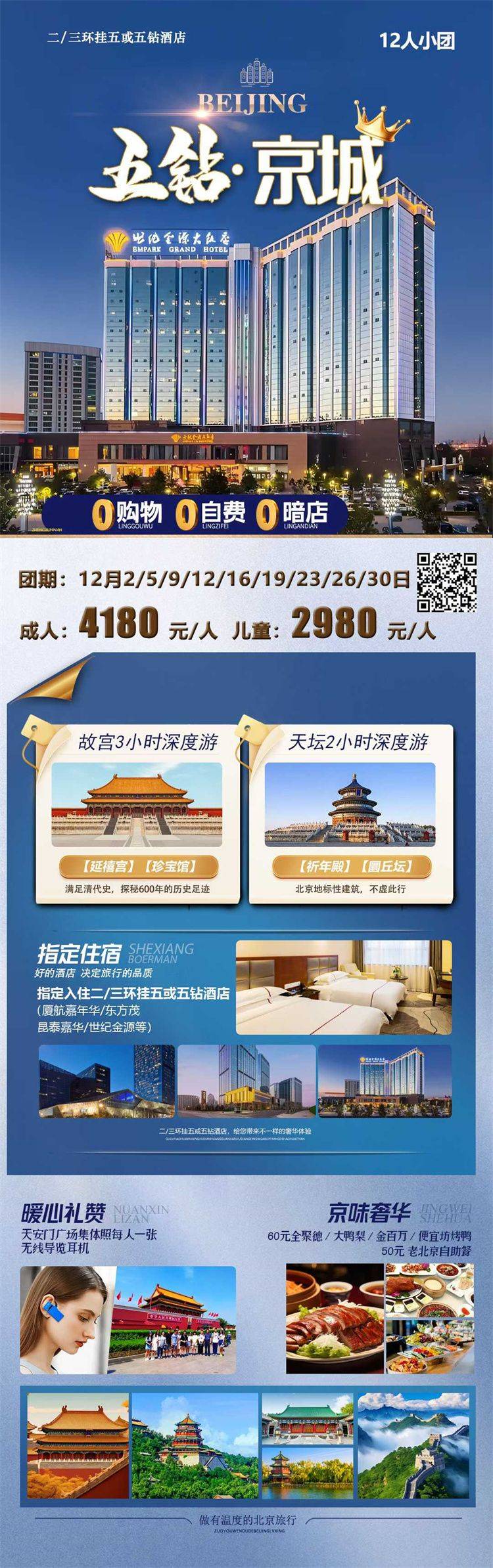 •儿童价标准:年龄2~12周岁(不含),不占床不含早、行程中标注所含内所含内容为准。儿童若占床,请联系客服补齐房费。