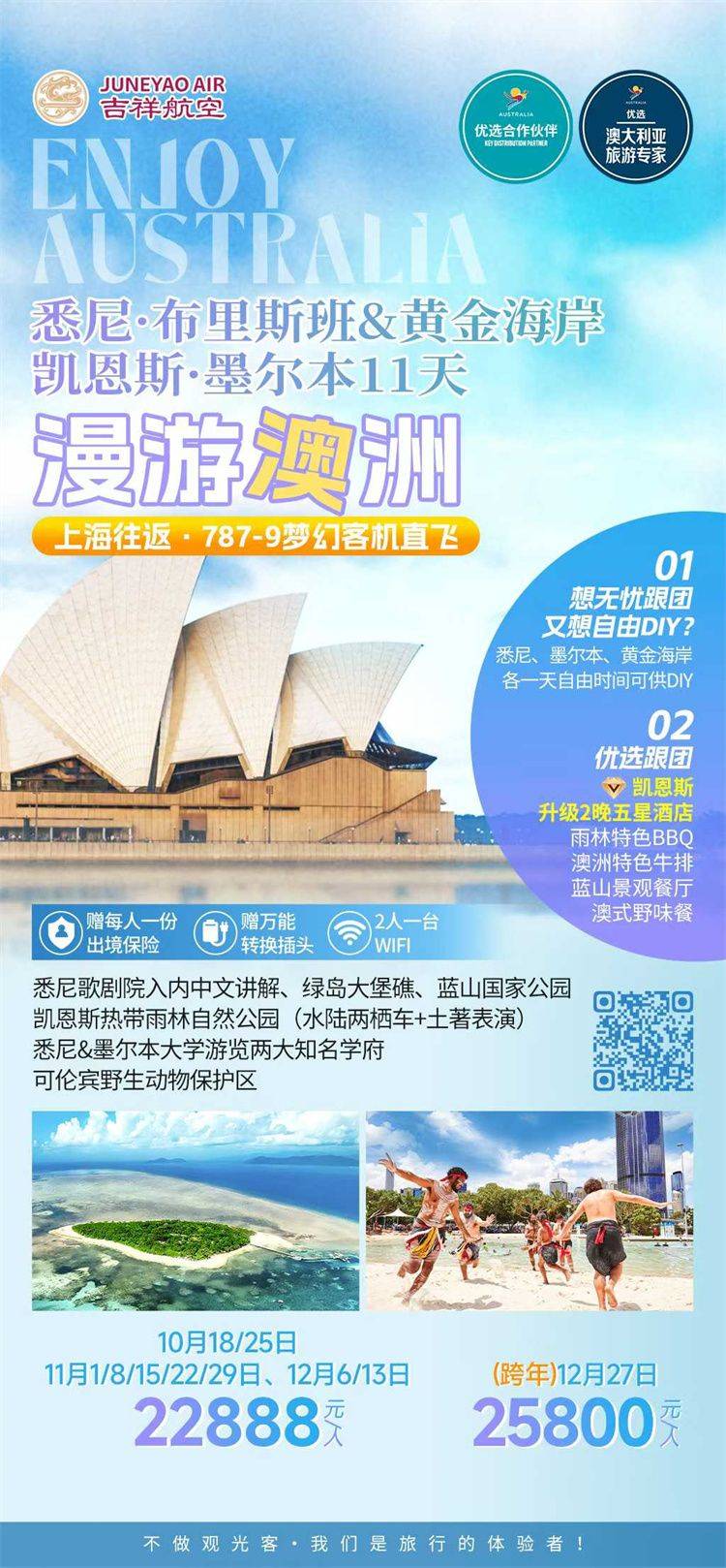 跟团游10-12月福建往返【澳大利亚8-10天】澳洲旅游团线路合集