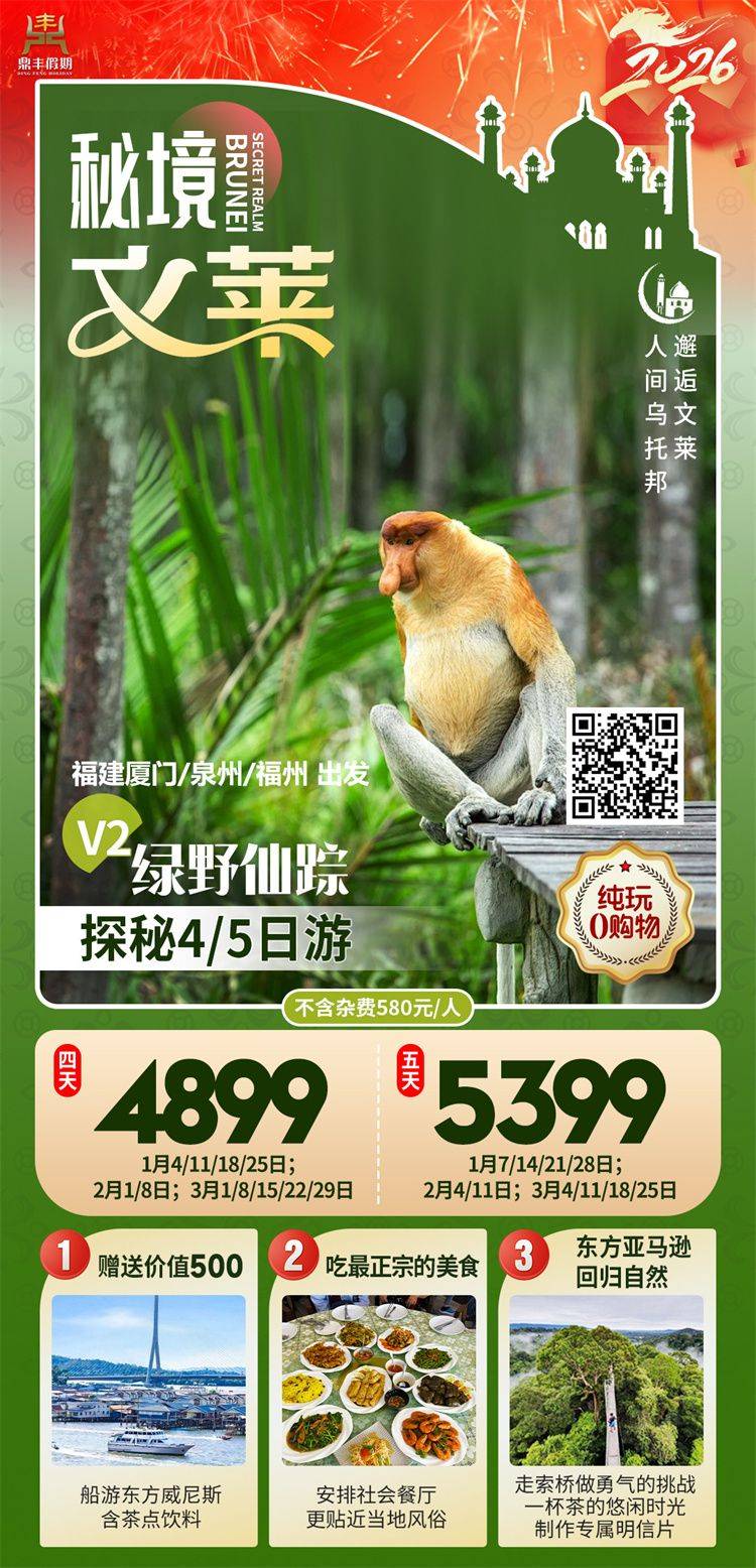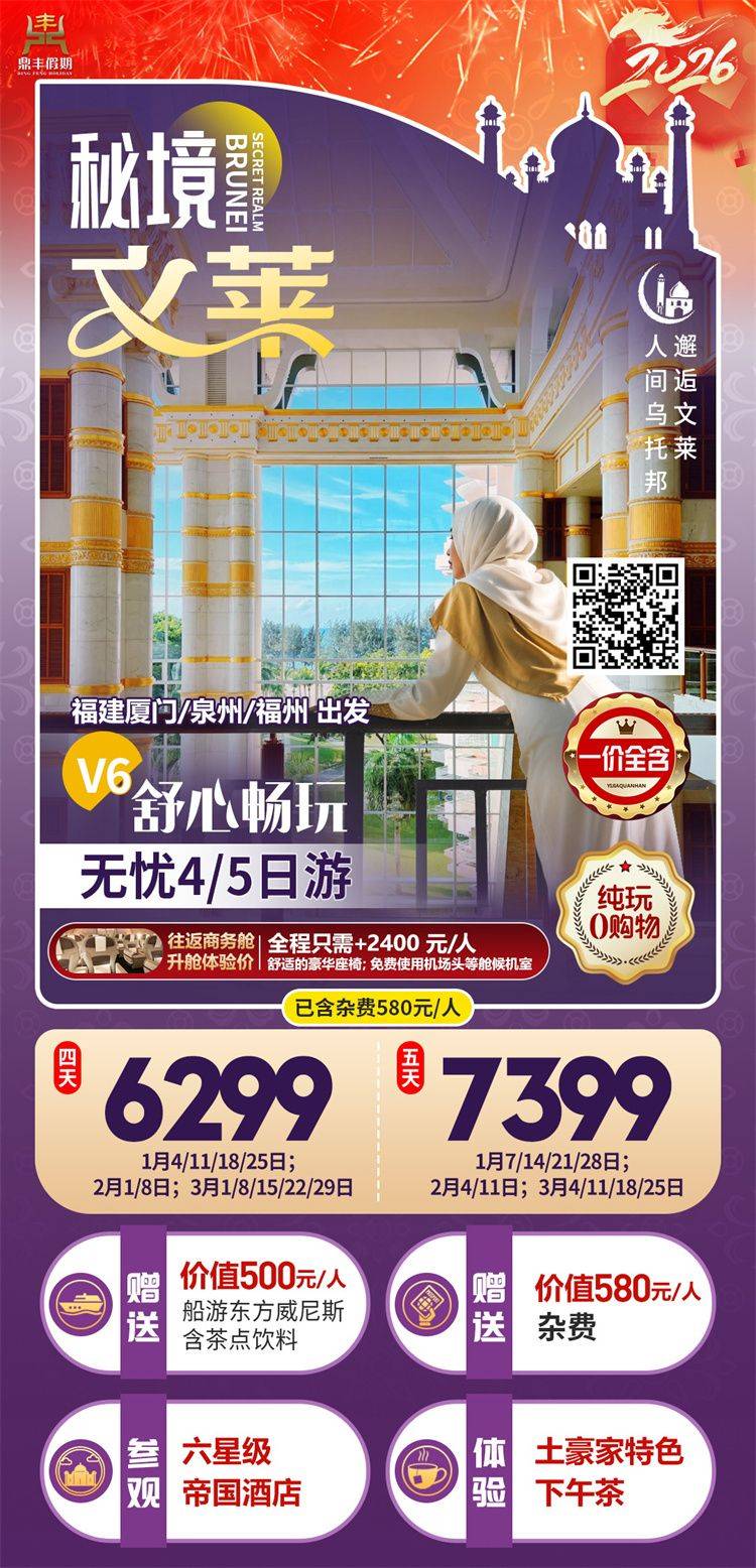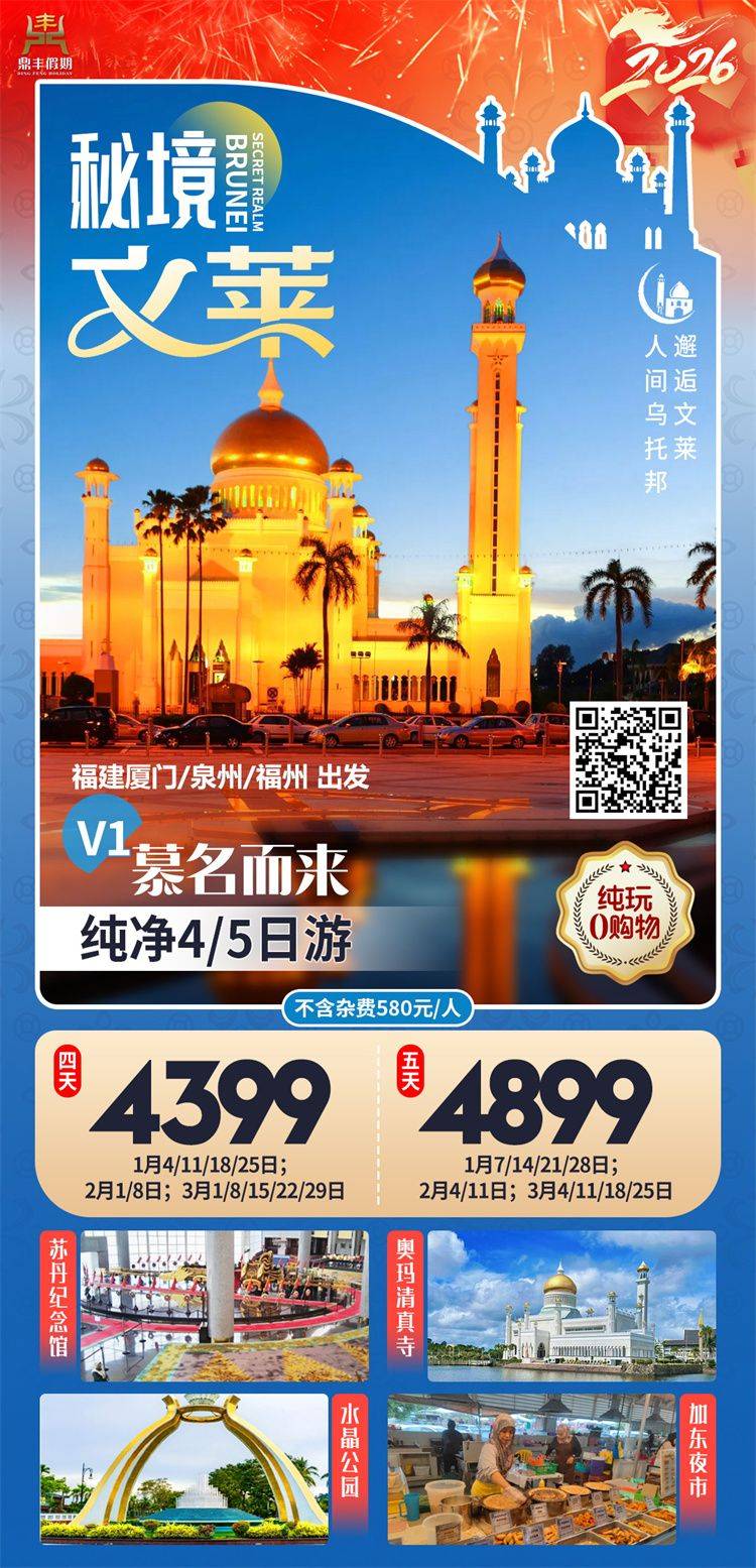 跟团游3月福建出发【文莱纯玩4-5天】旅游团线路合集