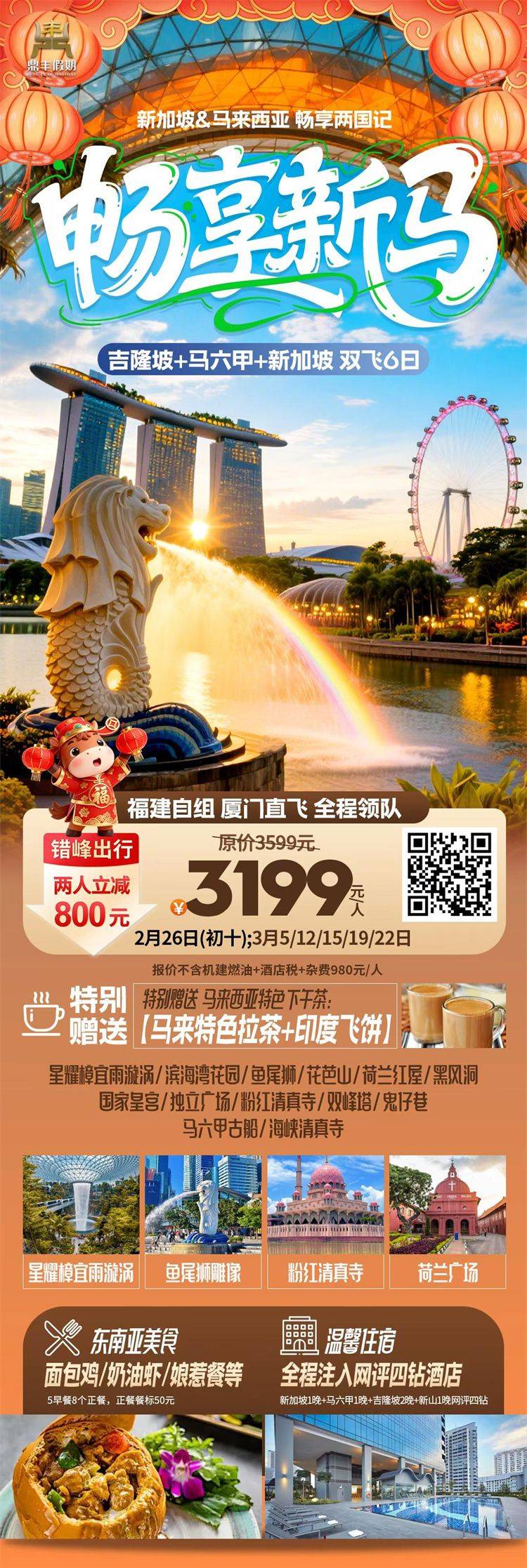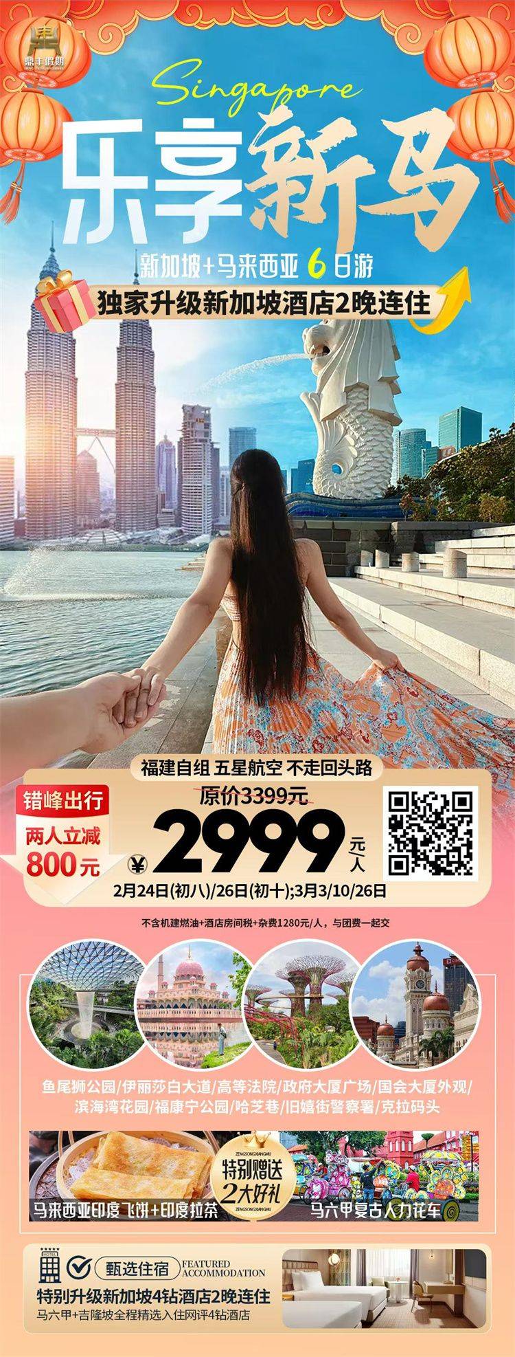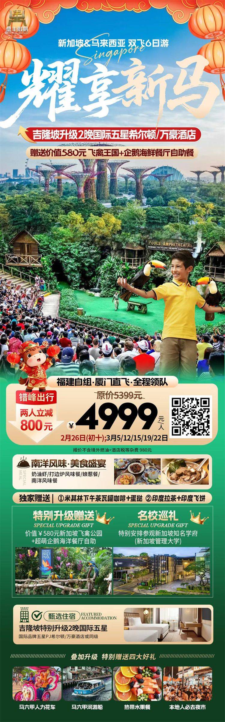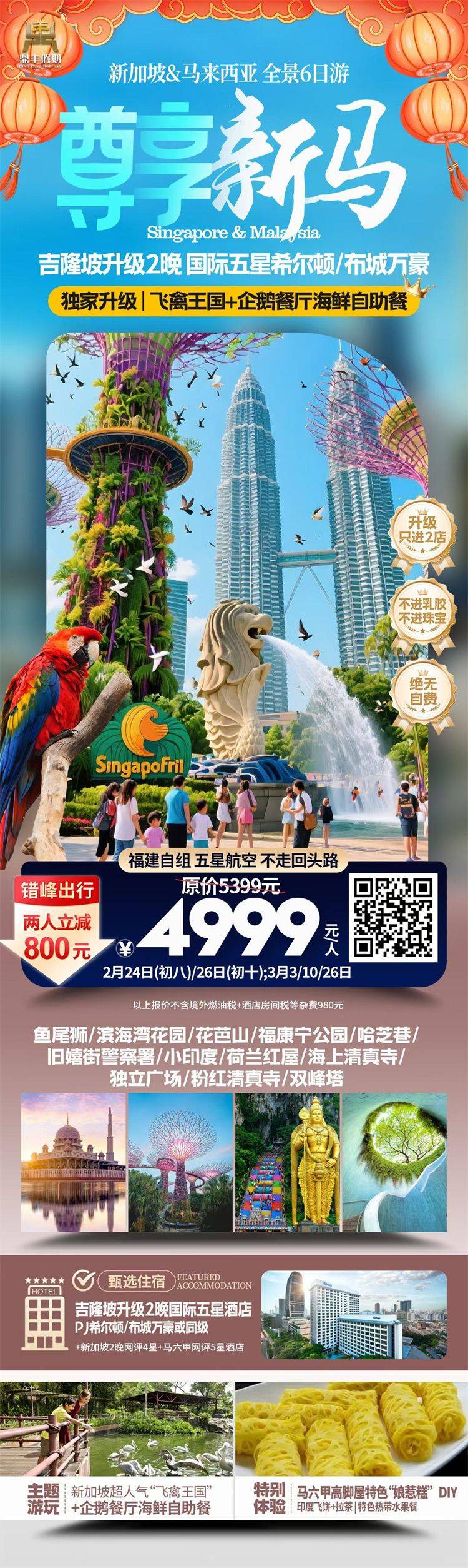 跟团游3月福建去【新加坡+马来西亚5-6天】新马旅游团线路