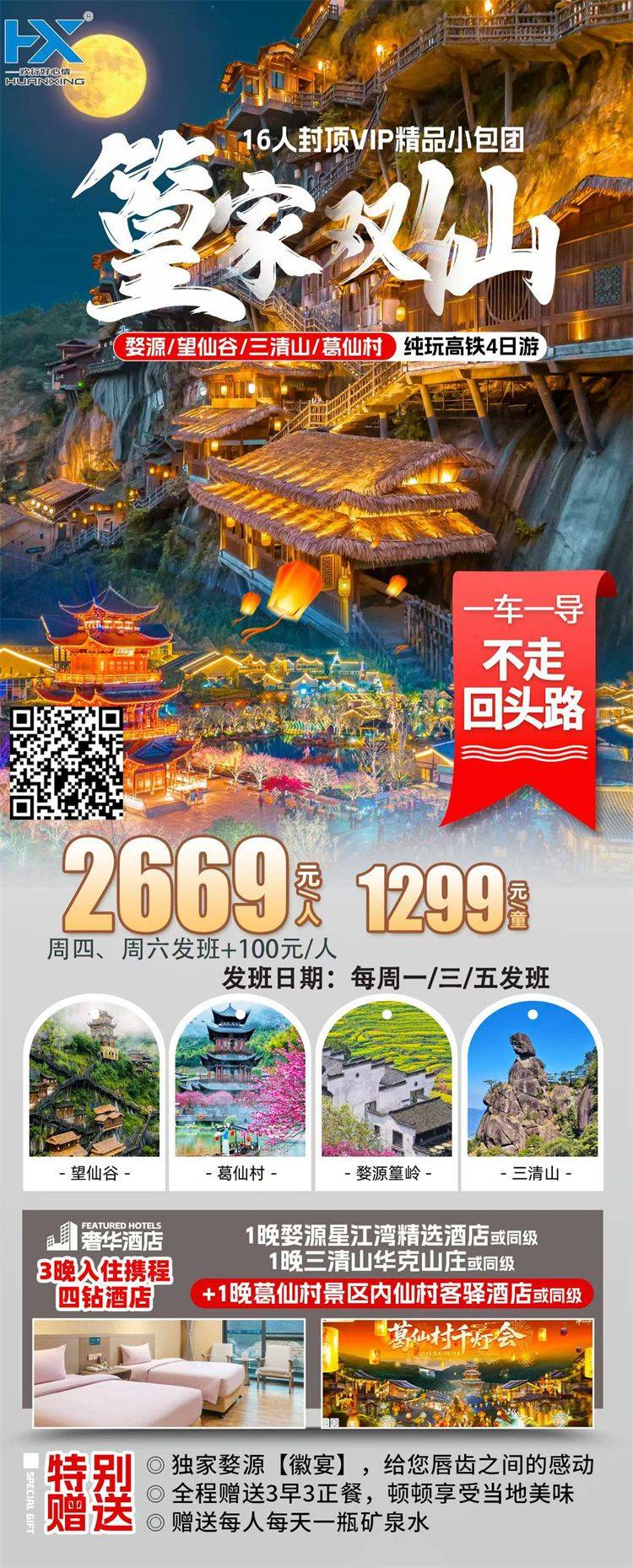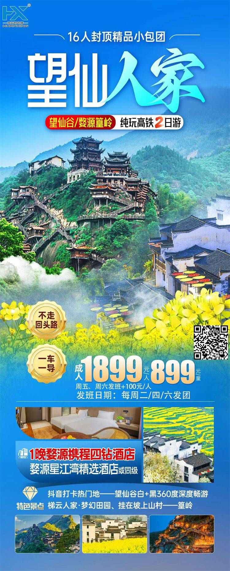 ★出团通知:出团通知最晚于出团前 1 天发送,若能提前确定,我们将会第一时间通知您。若发团人数不足或不可抗力因素导致无法出行,我们将在出行前 3 个工作日通知取消该行程,您可以选择延期出行或更改线路出行或取消退团。