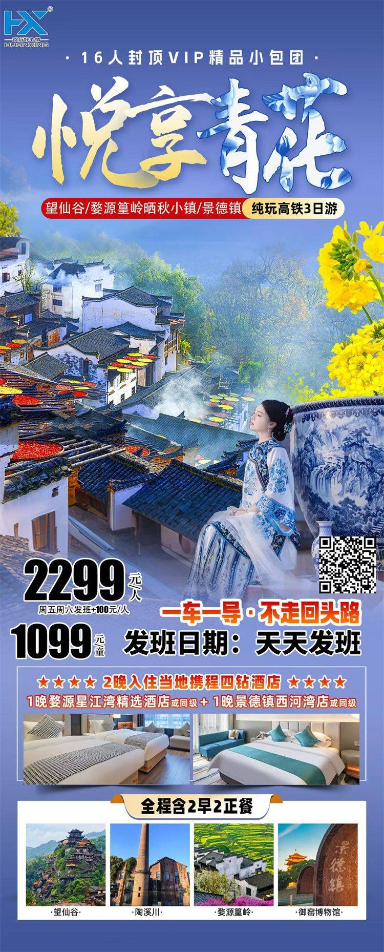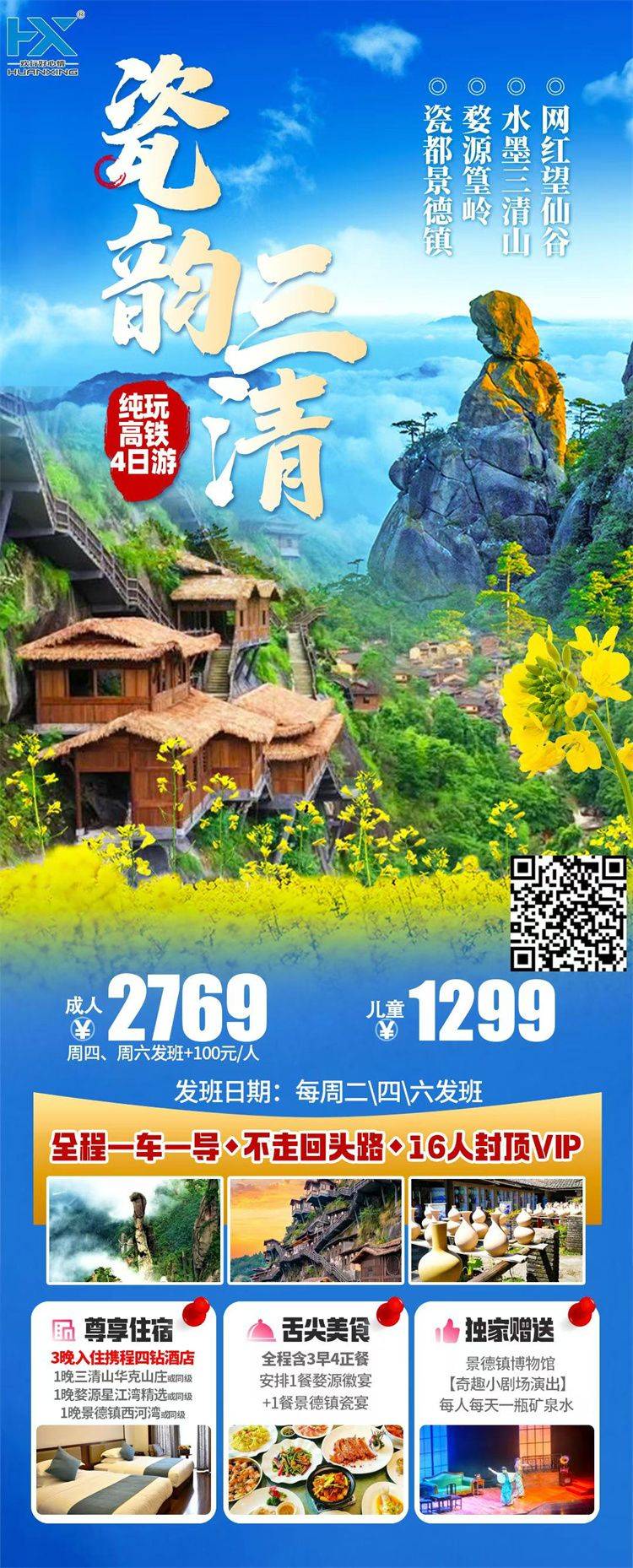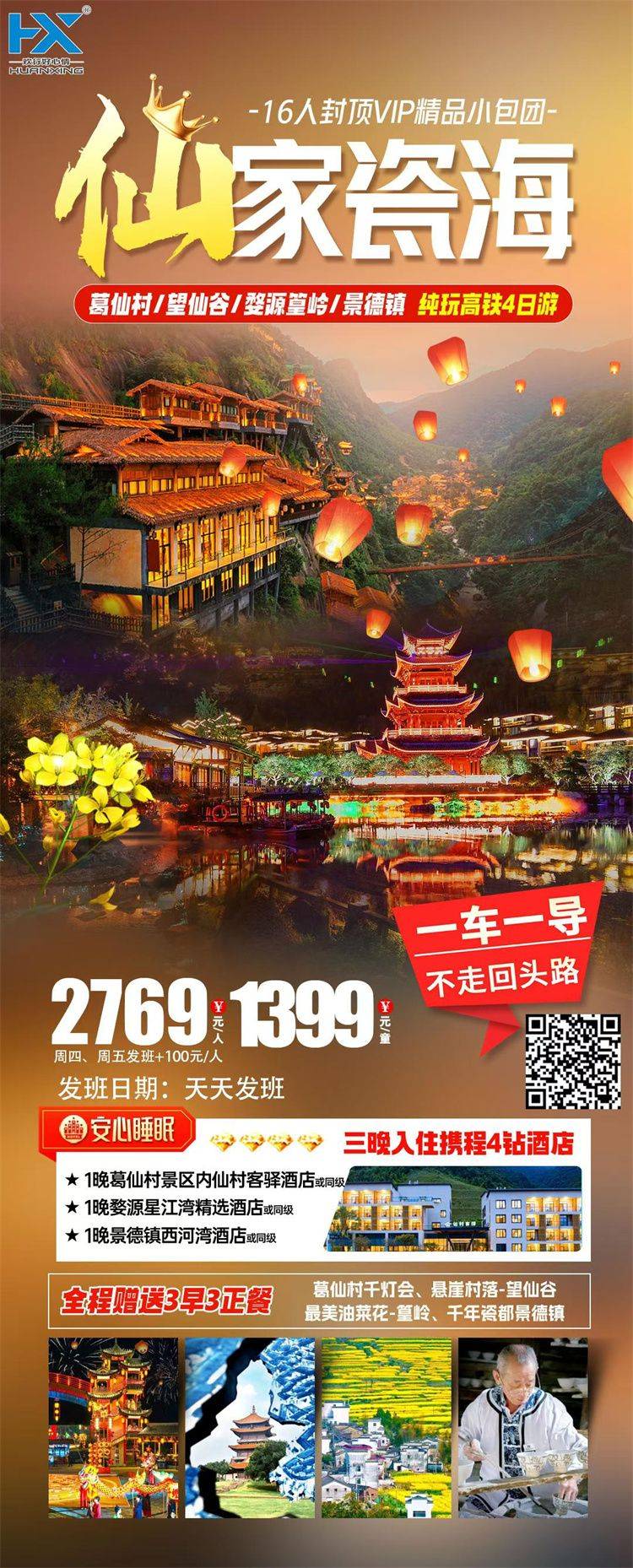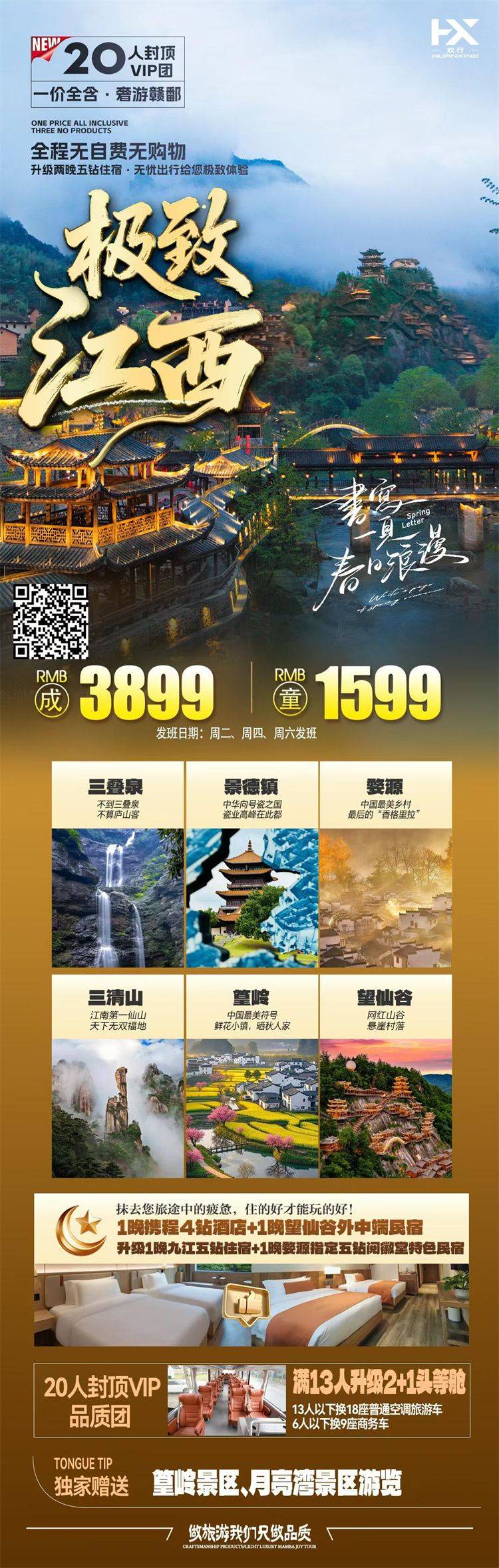 •交 通:含出发地-目的地往返大交通(机票或动车)