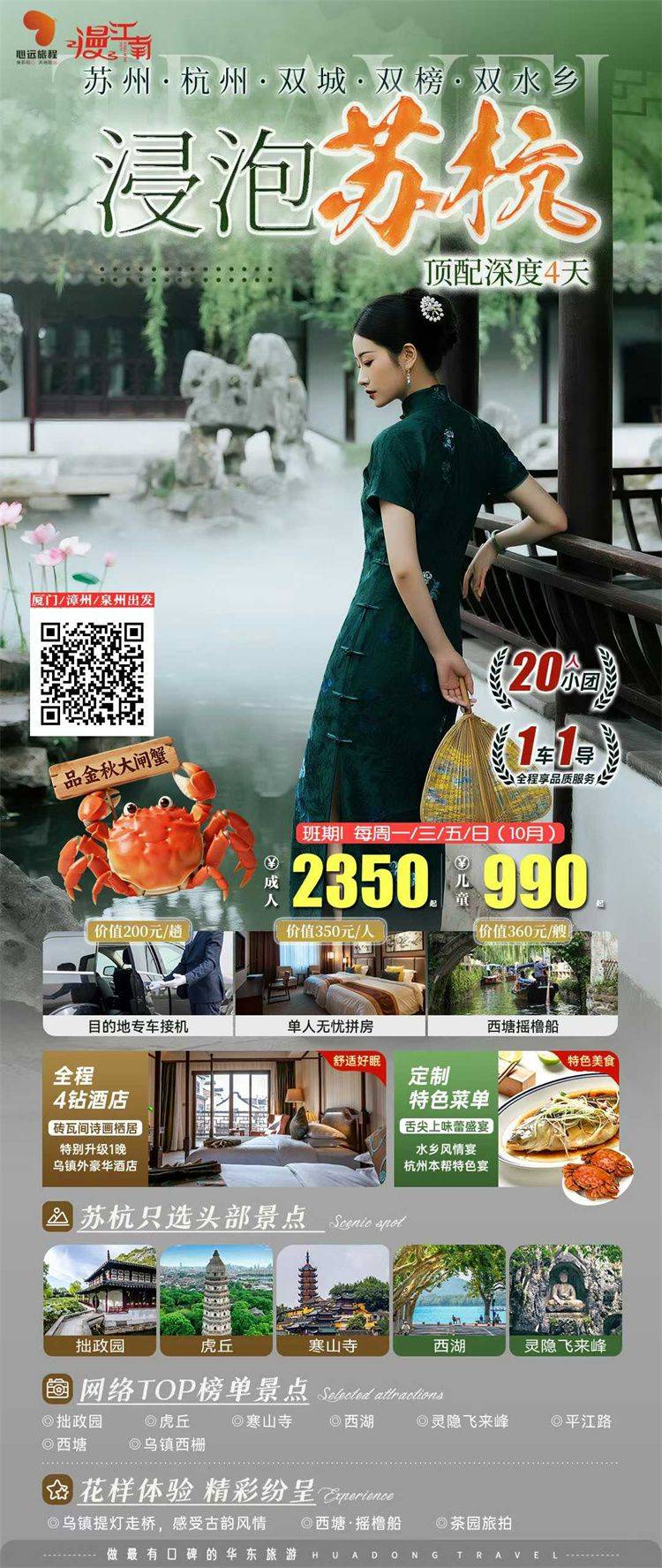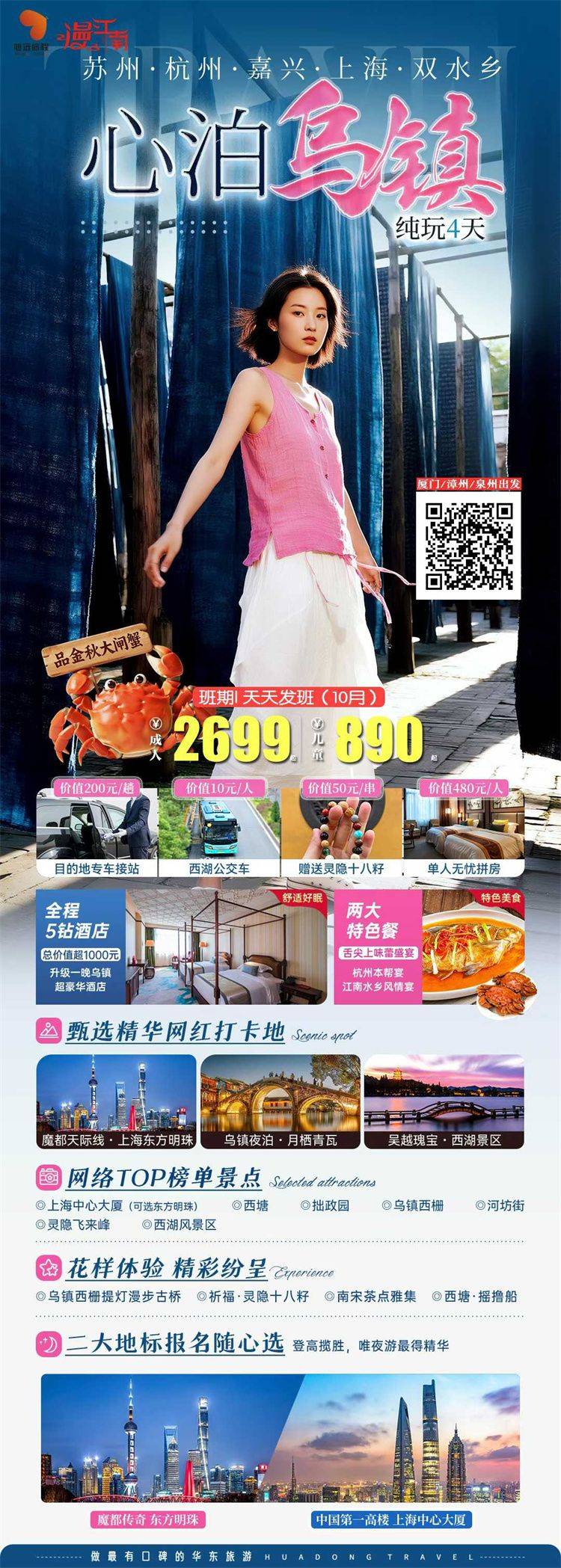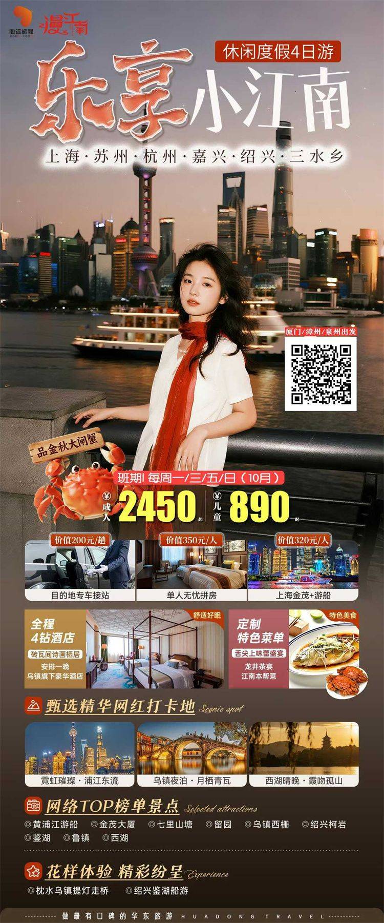 跟团游10月福建往返【华东4天江南风光】旅游团线路合集