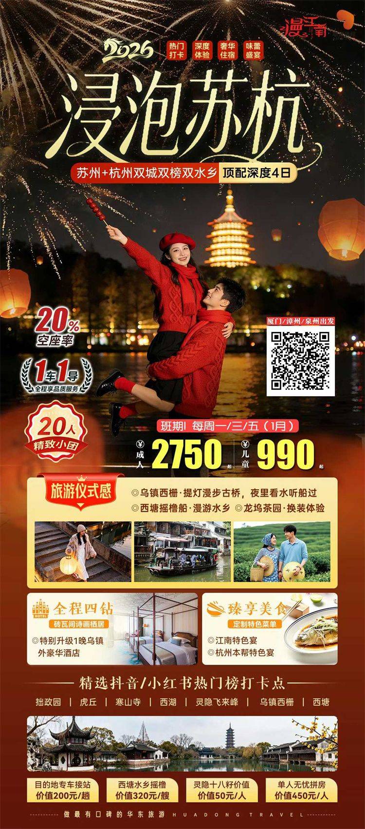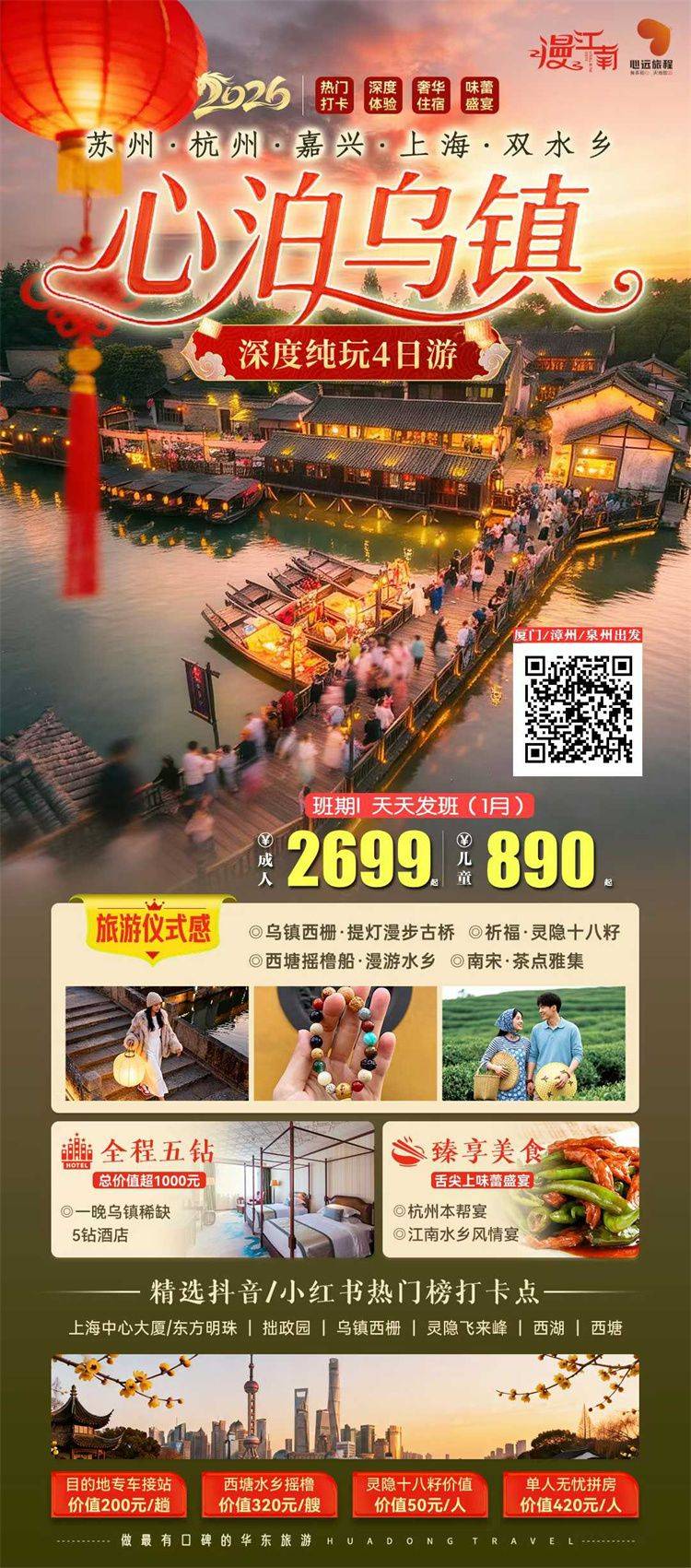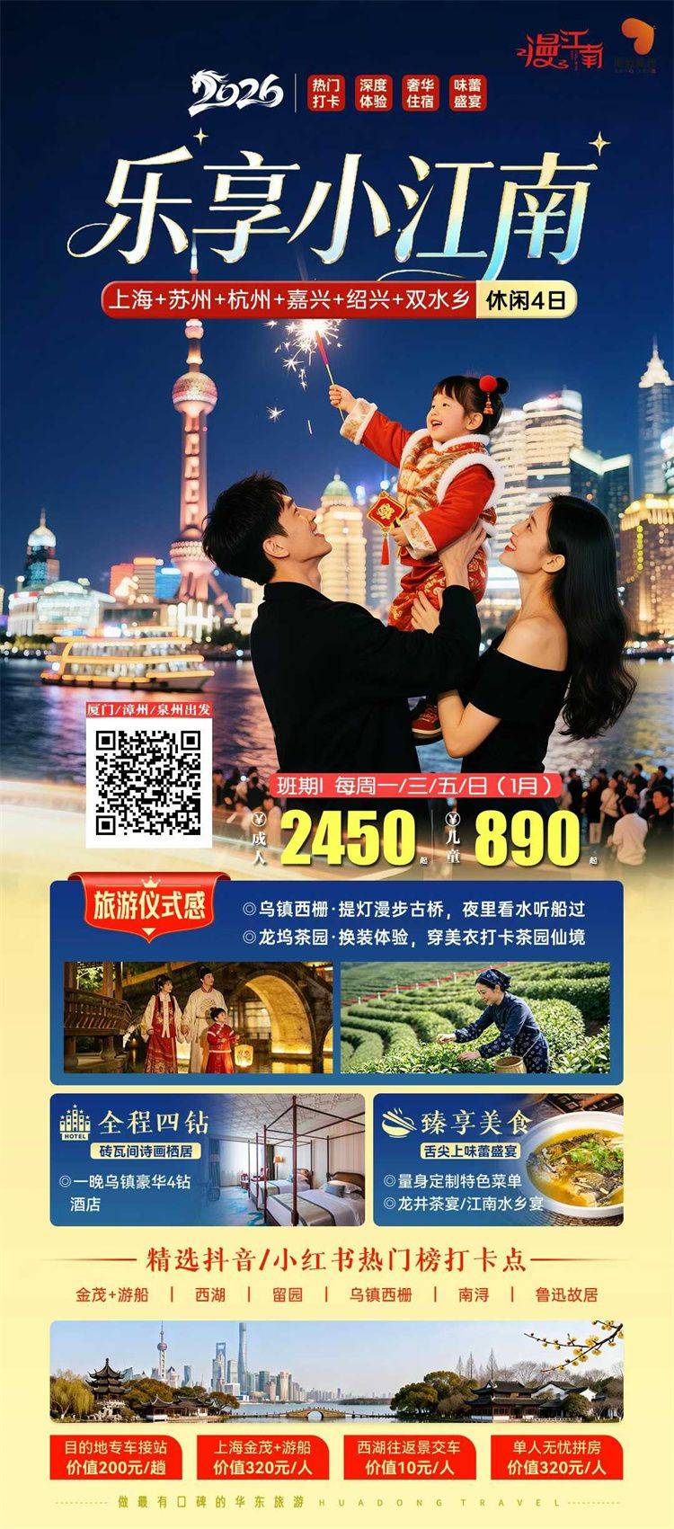 跟团游1月福建往返【华东4天江南风光】旅游团线路合集
