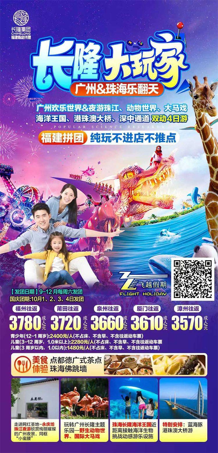 跟团游12月福建去【广州珠海长隆亲子3-5天】旅游团线路合集