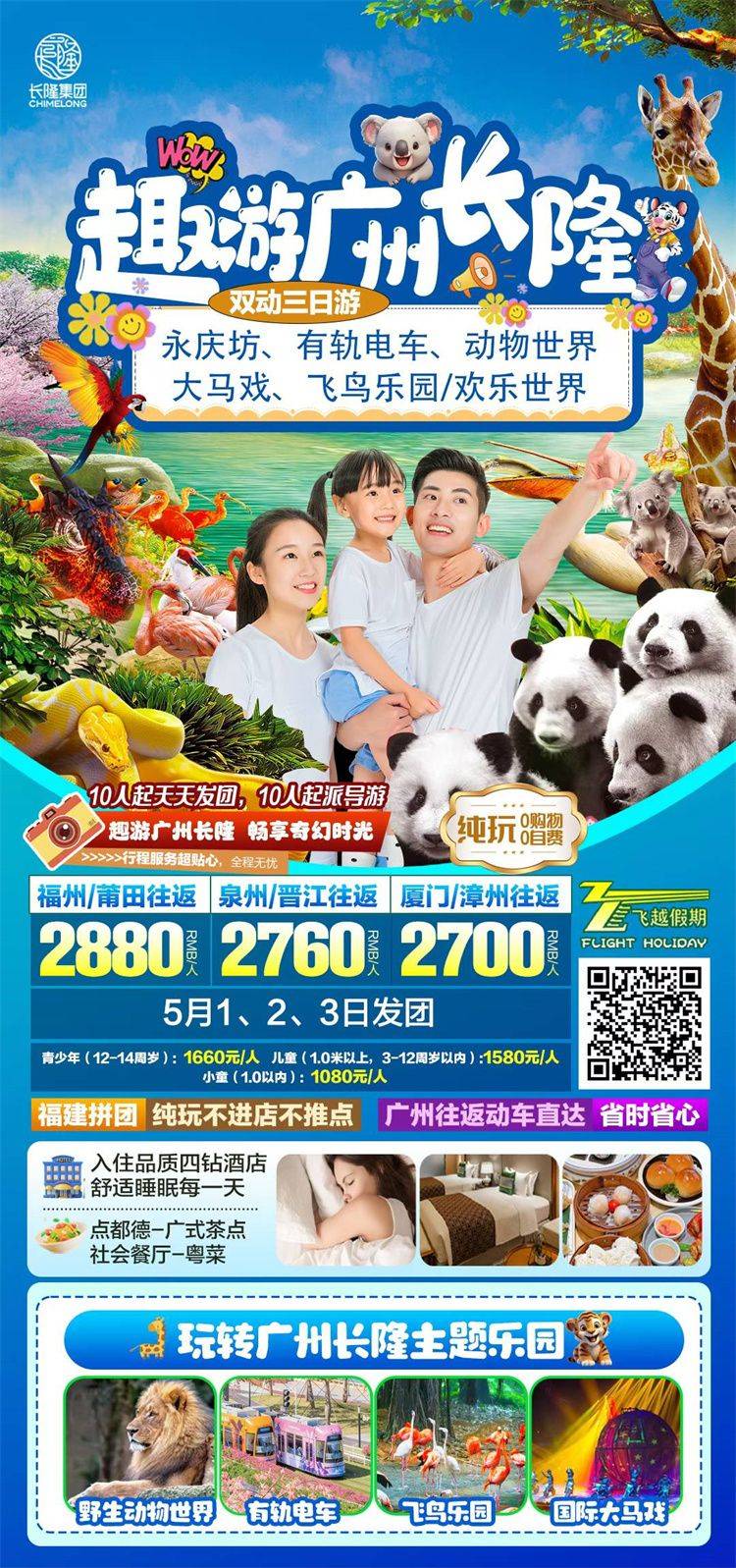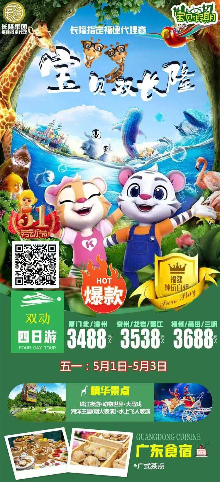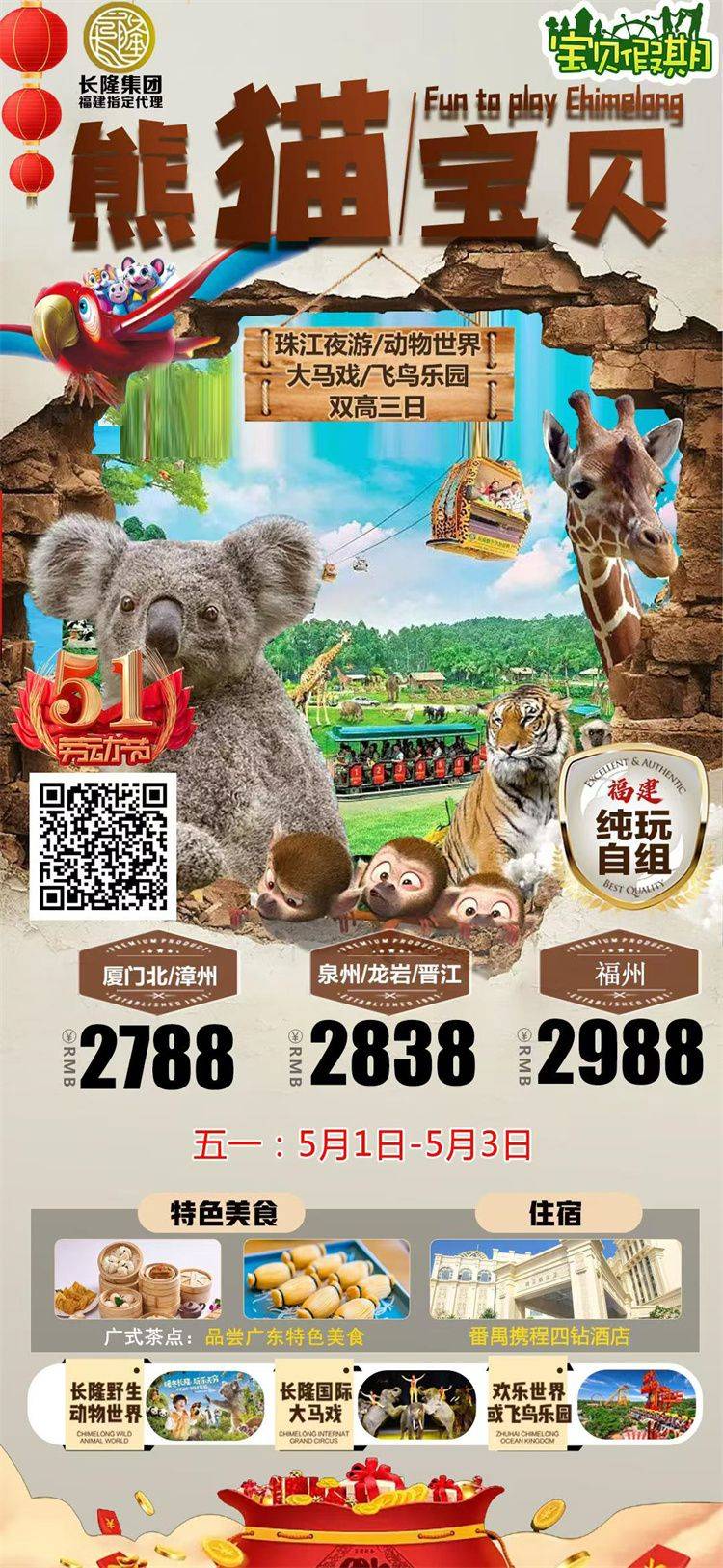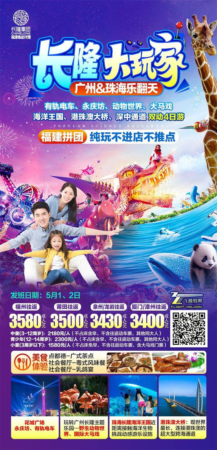 跟团游五一福建去【广州珠海长隆亲子3-5天】旅游团线路合集
