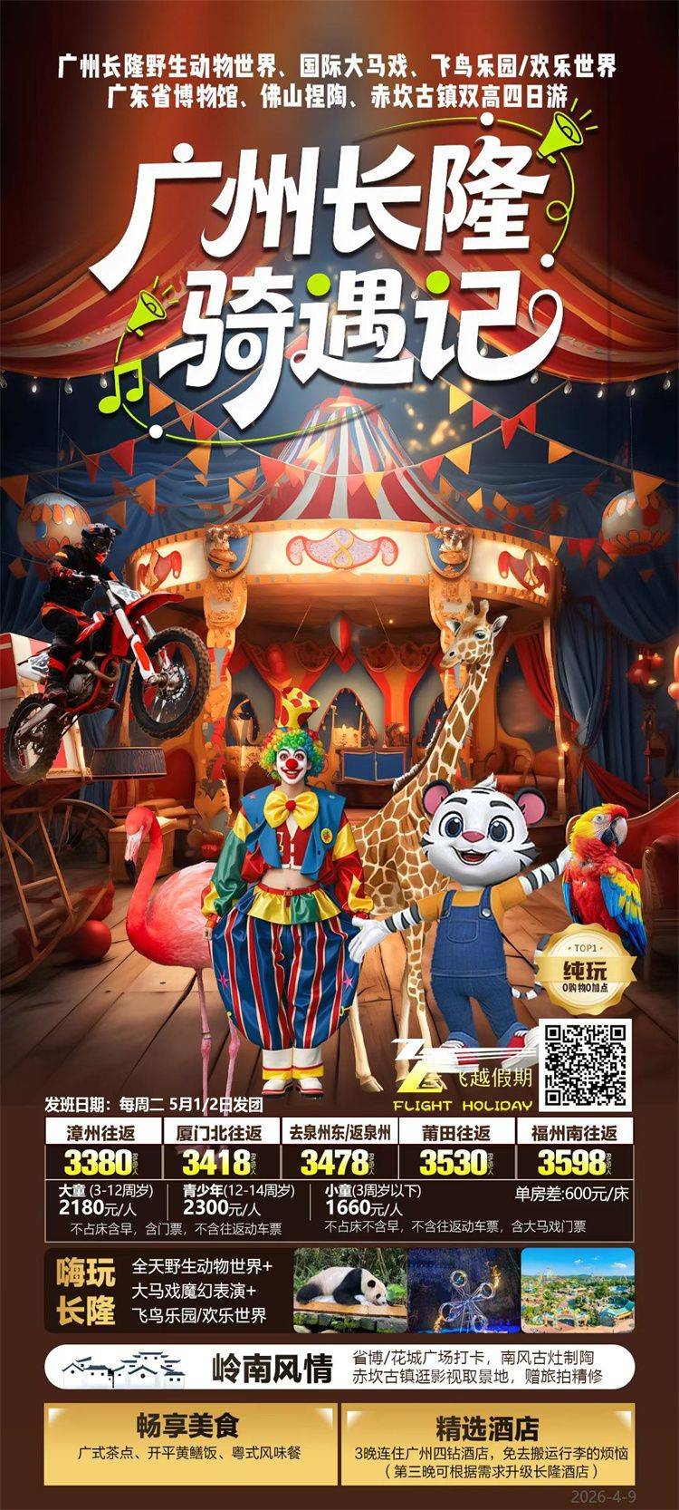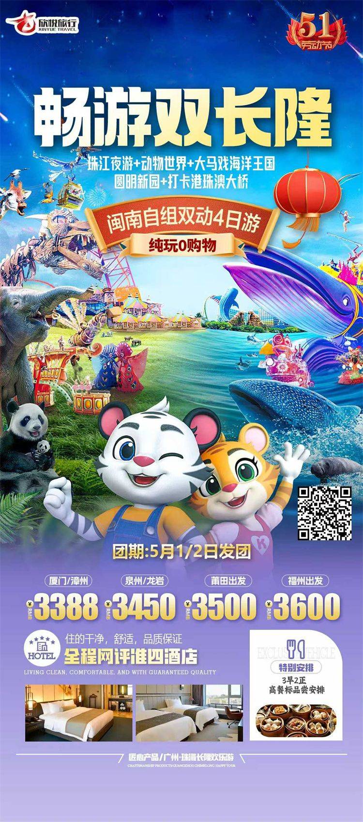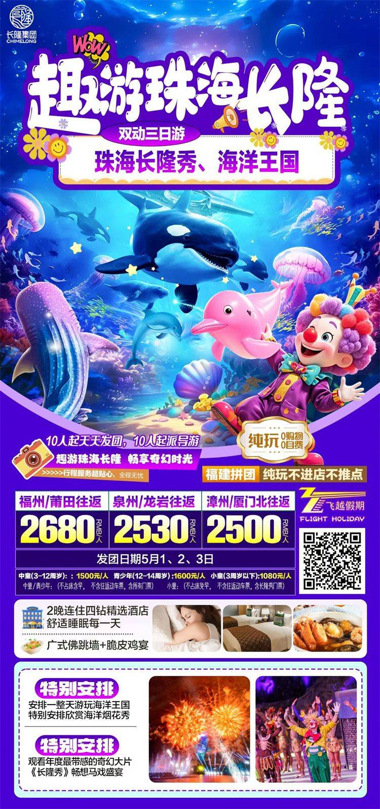 跟团游五一福建去【广州珠海长隆亲子3-5天】旅游团线路合集